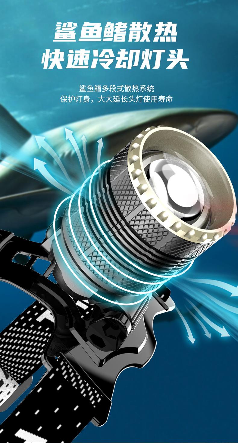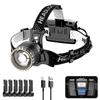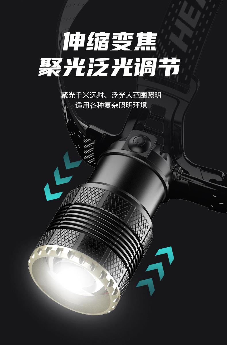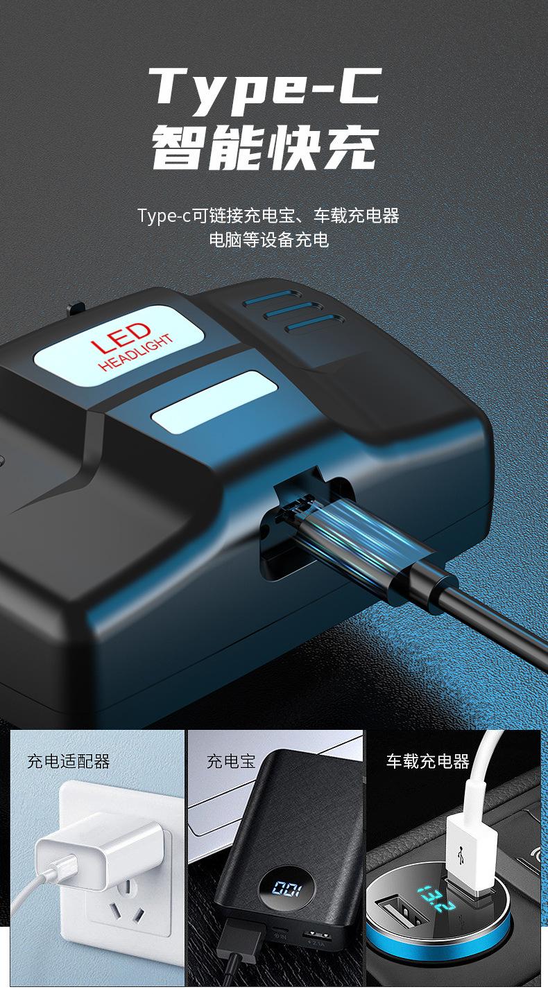 Faro delantero transfronterizo de inducción de larga duración, luz potente y resistente, zoom telescópico tipo C, reflector para exteriores.
