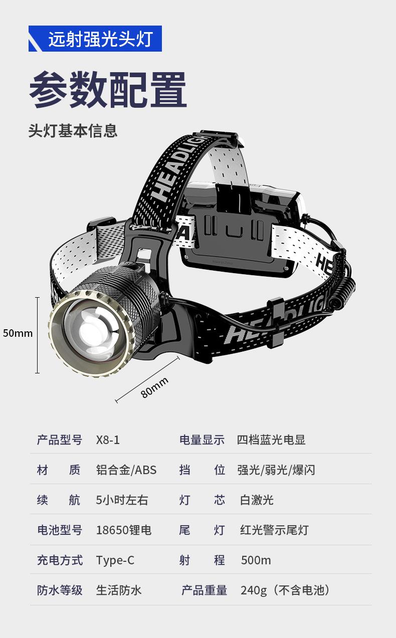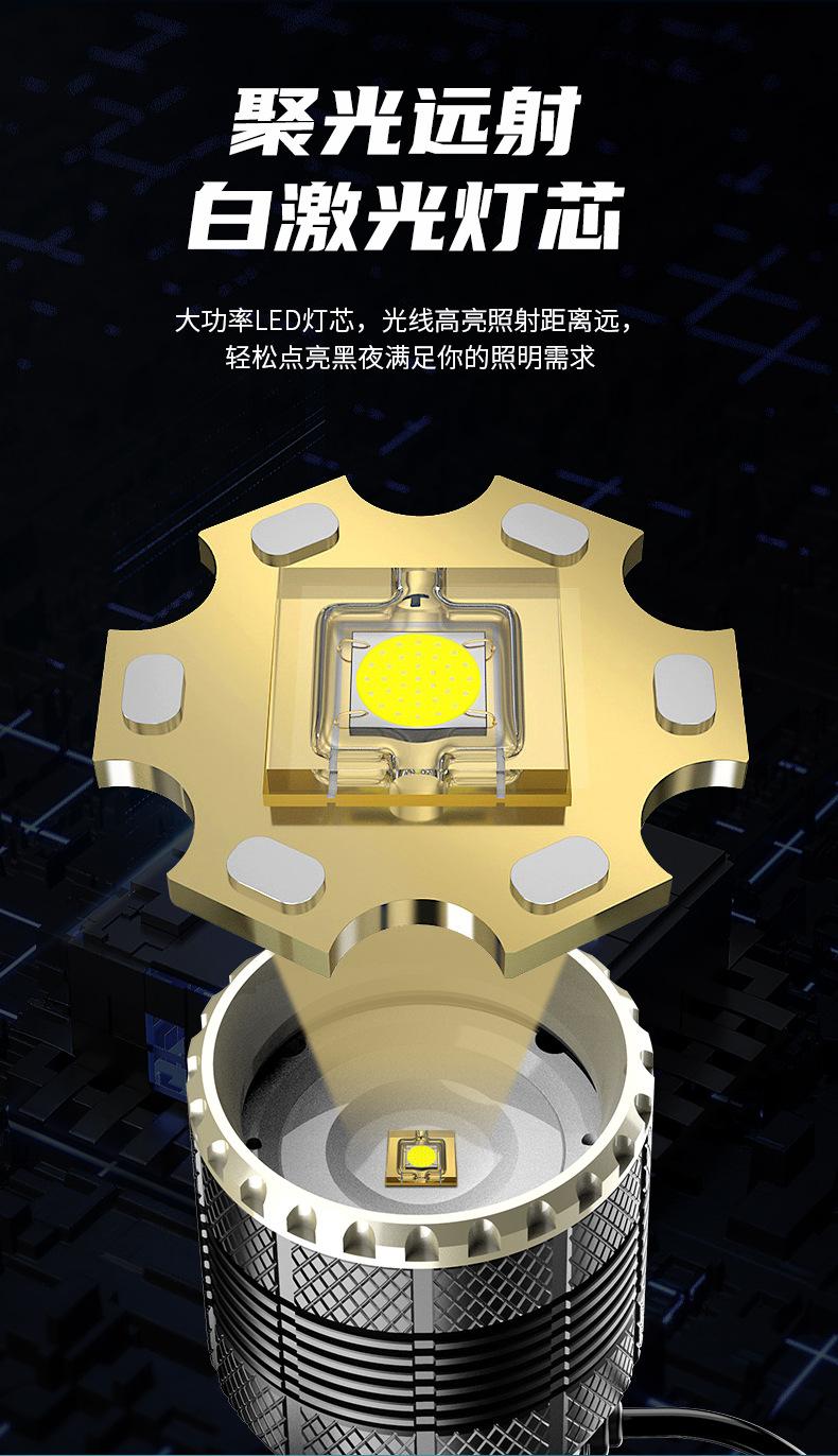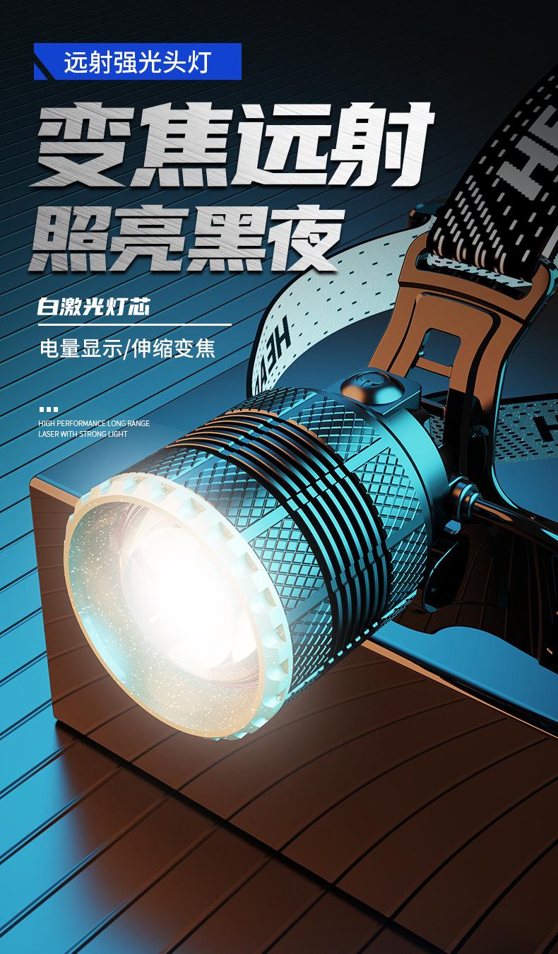 Faro delantero transfronterizo de inducción de larga duración, luz potente y resistente, zoom telescópico tipo C, reflector para exteriores.