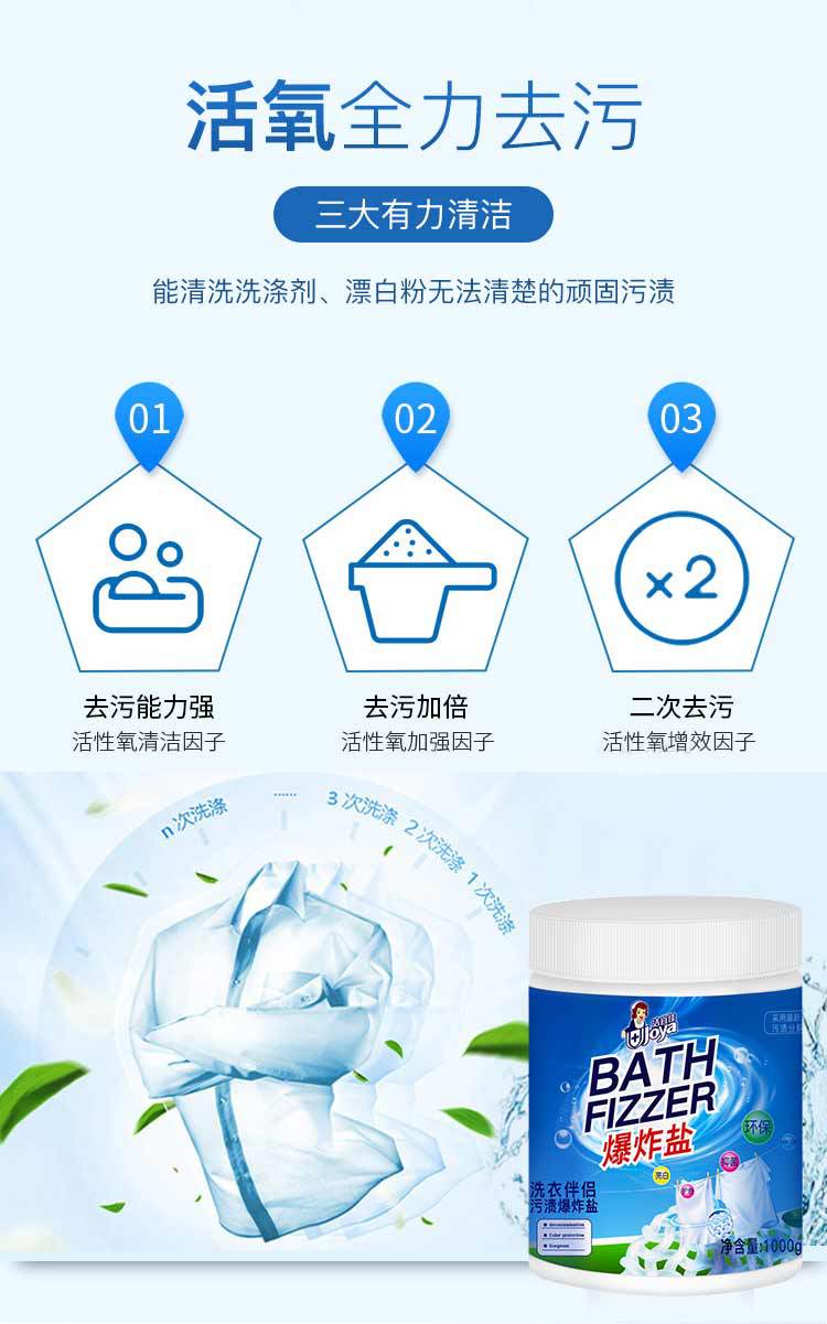 Removedor Explosivo de Manchas de Sal, Poderoso Polvo de Burbujas Bio-Enzimático para Bebé para Quitar Manchas, Eliminar el Amarillamiento y Blanquear la Ropa, Blanqueador OEM