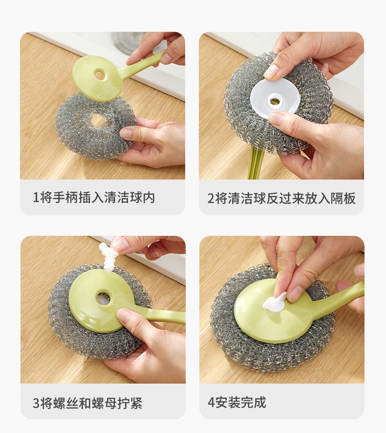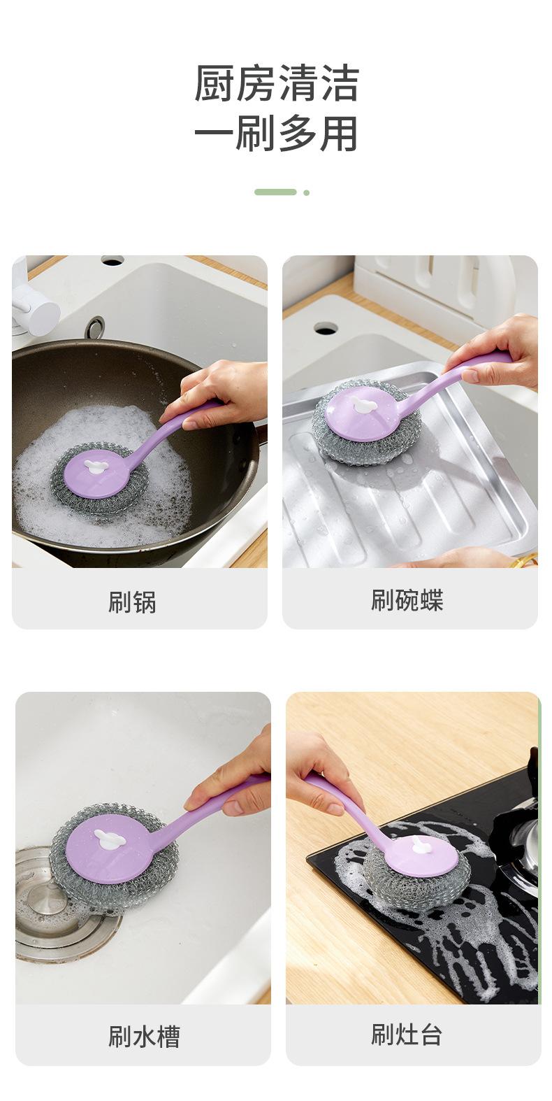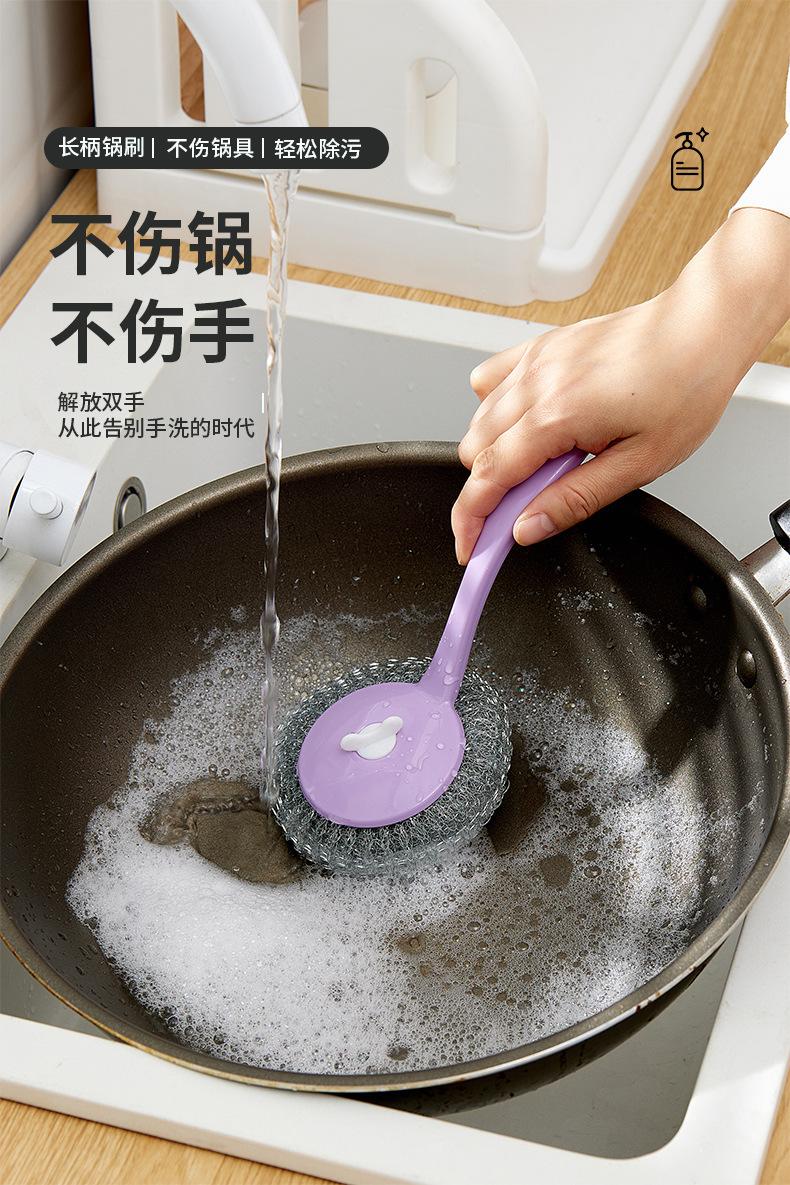 Cepillo para el hogar, olla, artefacto, mango largo, cepillo para lavar, cuenco de cocina, cepillo de limpieza, cuenco grande de acero inoxidable con forma de bola, olla para lavar