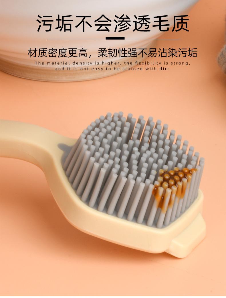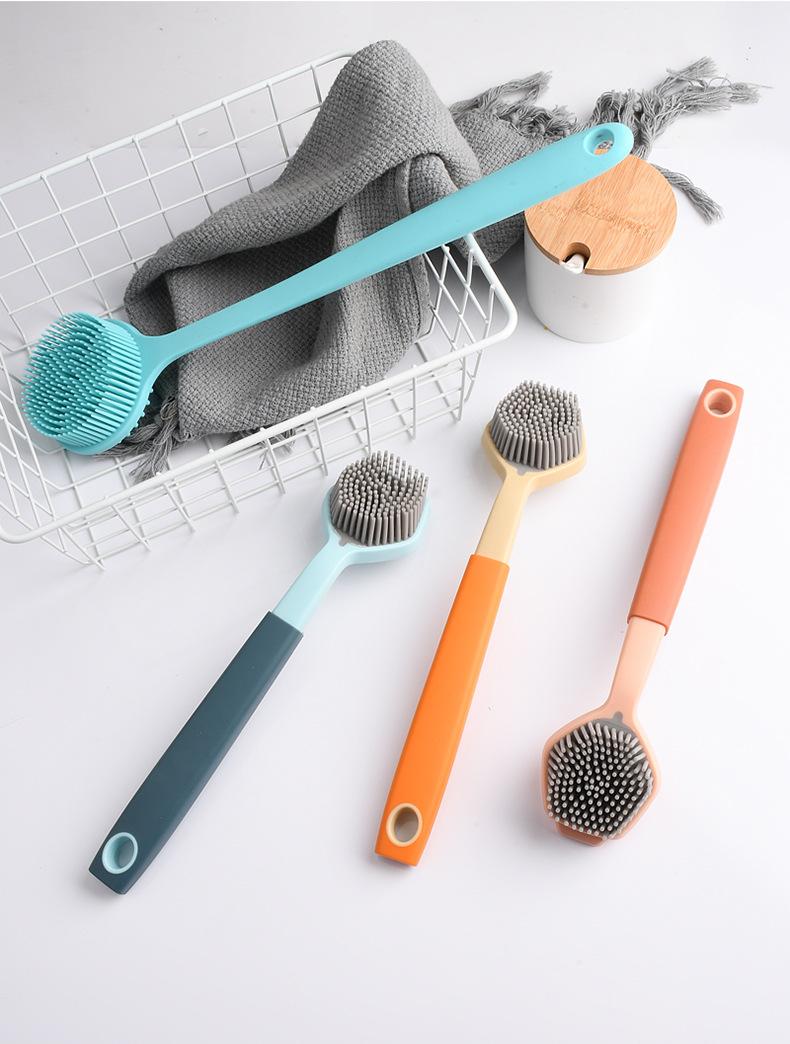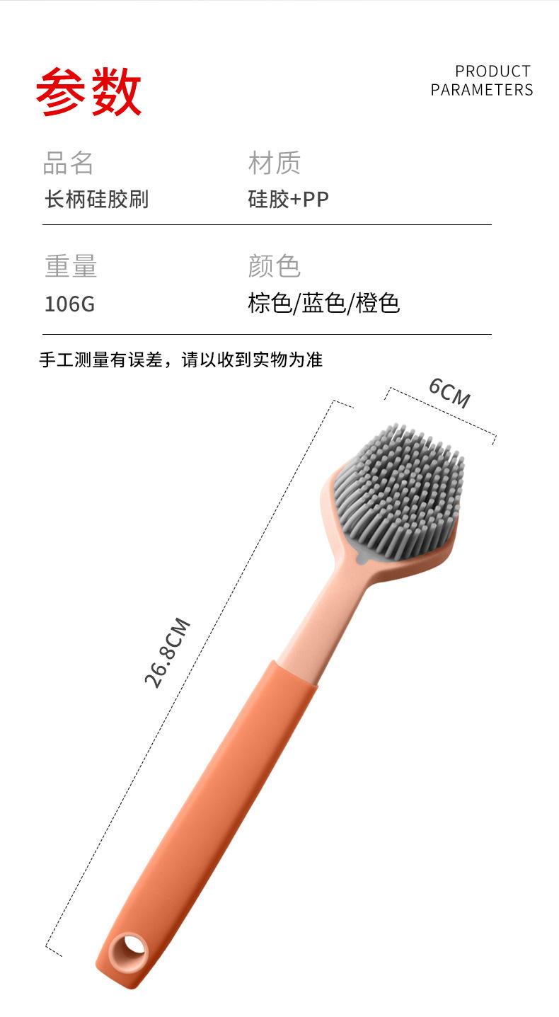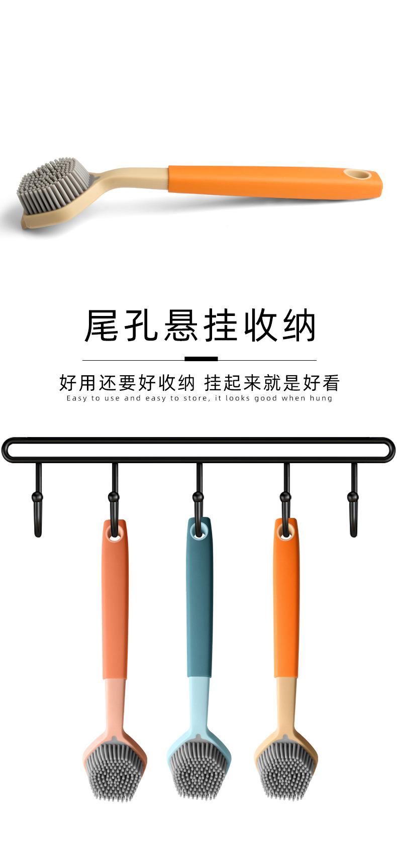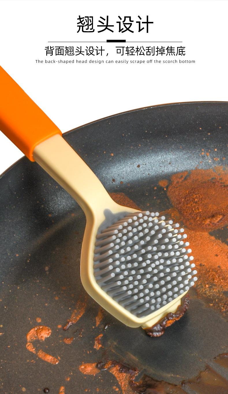 Cepillo de limpieza descontaminante para ollas de plástico con cerdas de silicona y mango largo, suave y antirayaduras.