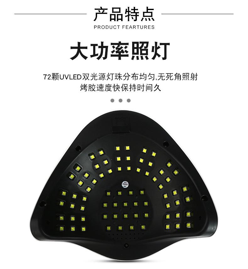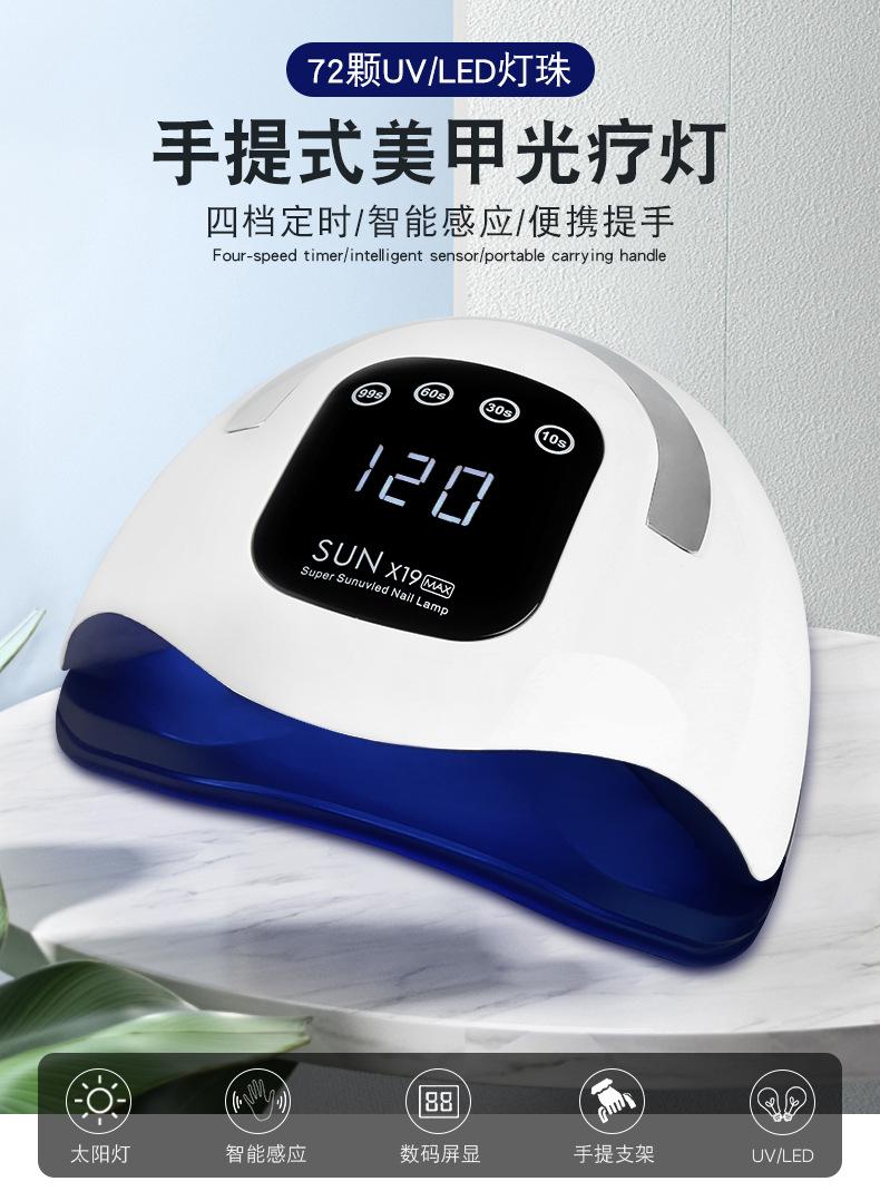 Lámpara de uñas portátil transfronteriza, nueva, de 72 luces, de alta potencia, de secado rápido, lámpara de fototerapia LED, lámpara para hornear con pegamento para esmalte de uñas.
