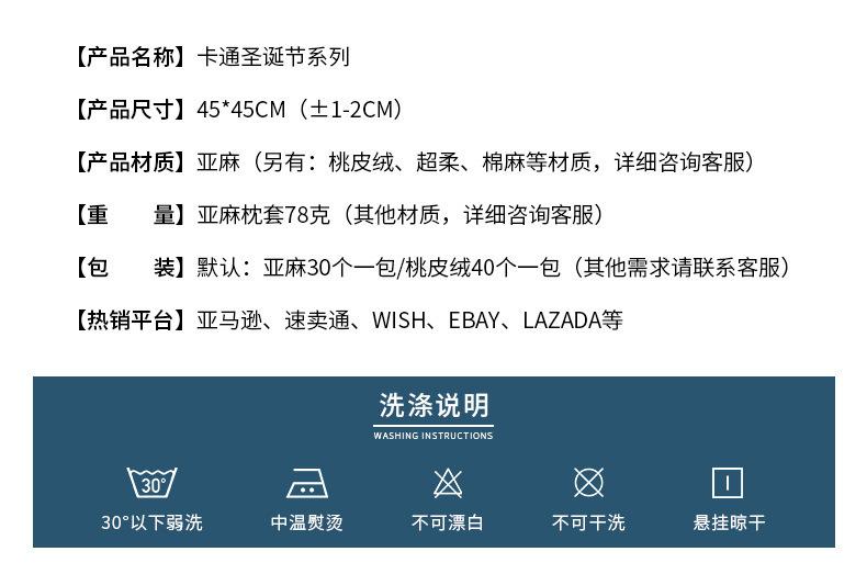 Juego de fundas de almohada navideñas transfronterizas de Amazon para sofá de dormitorio, funda de almohada de lino con dibujos animados de estilo europeo