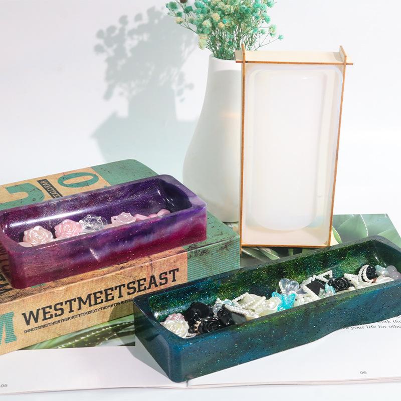 Jewelry Long Strip Tray Mold Medium + Medium Long Wooden Bracket