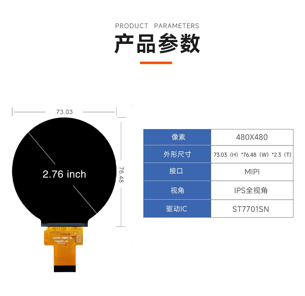 Pantalla a Color Redonda de 2.76 2.8 pulgadas Tft480*480 Hd Ips Pantalla LCD para Hogar Inteligente
