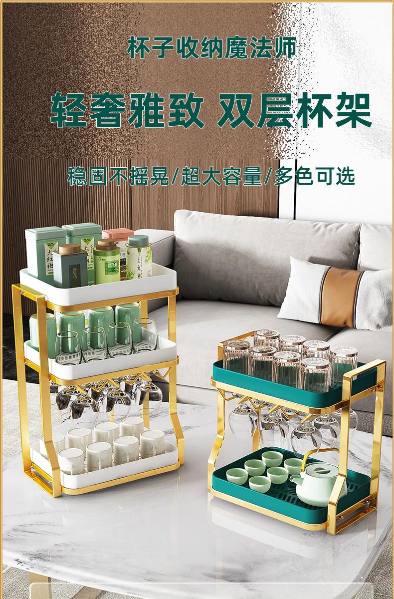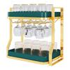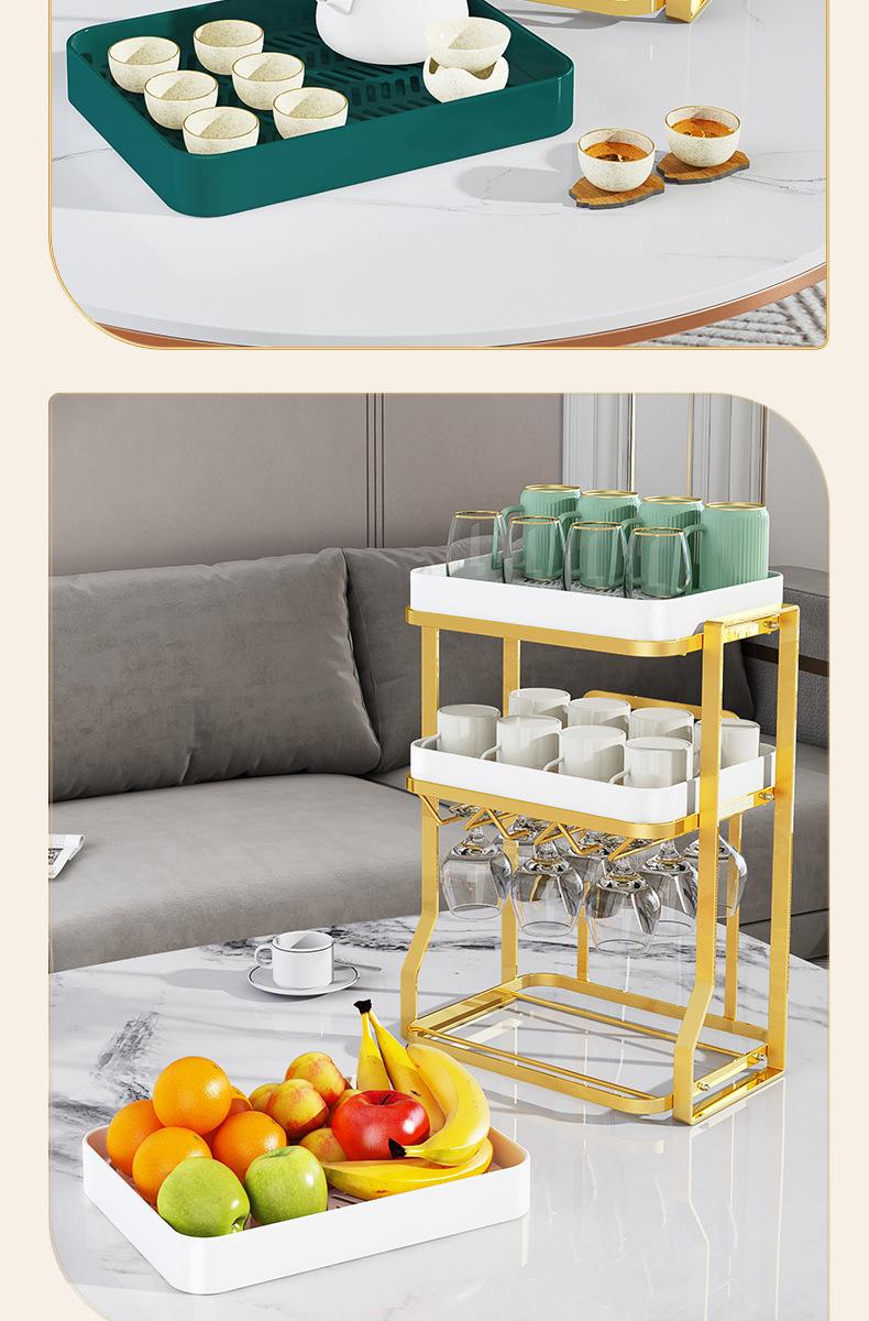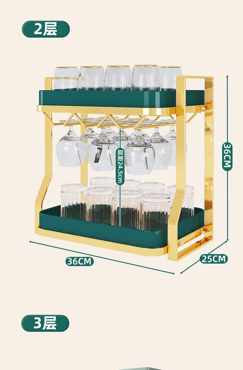 2 layers-red wine cup holder-gold rack-green plate