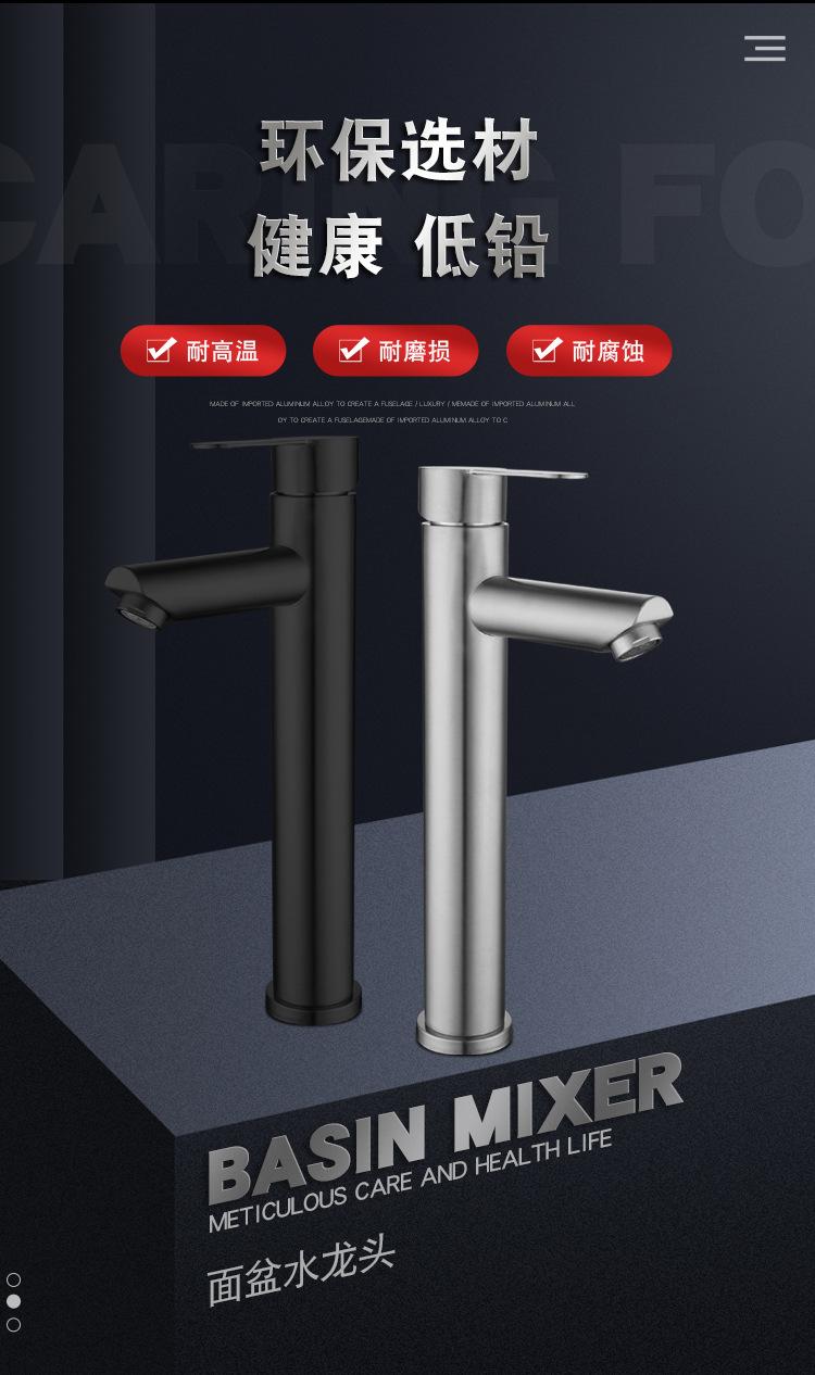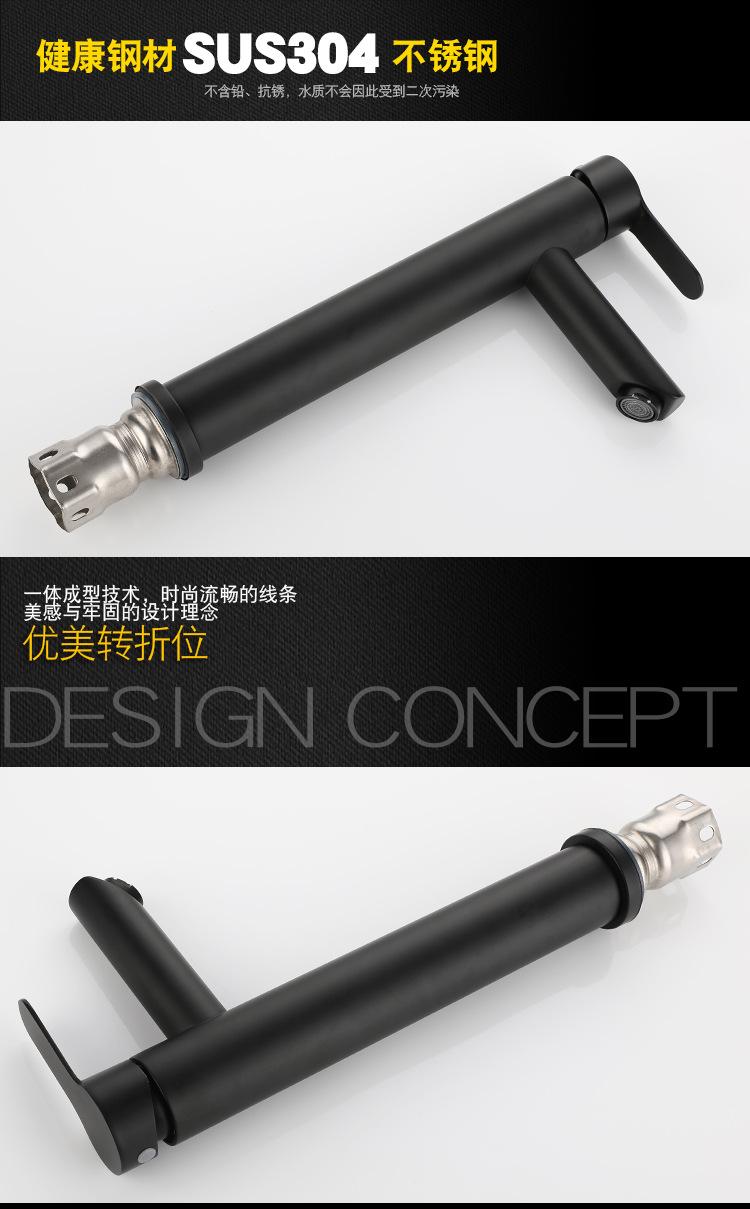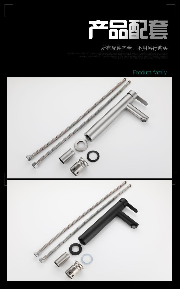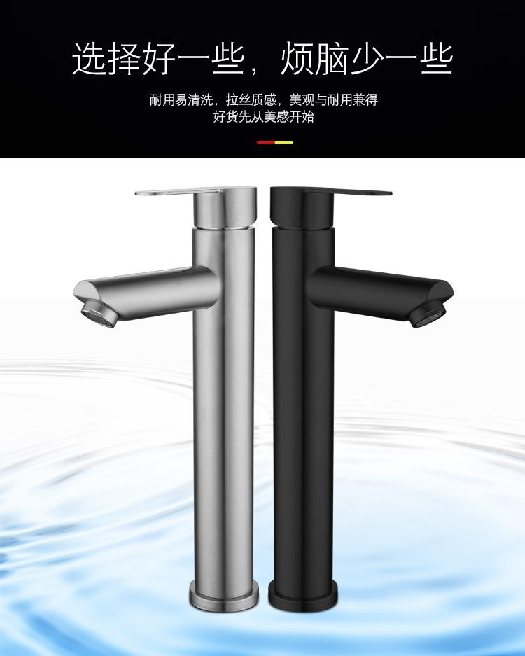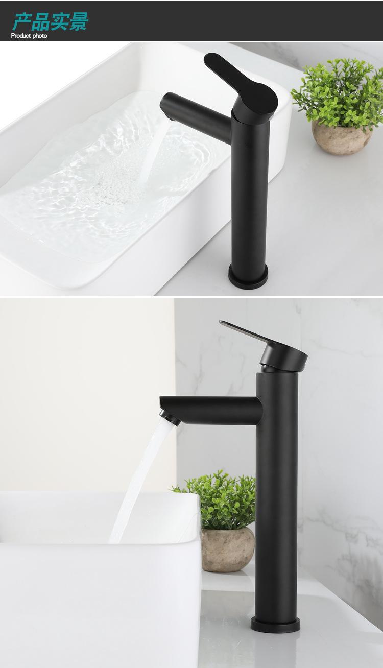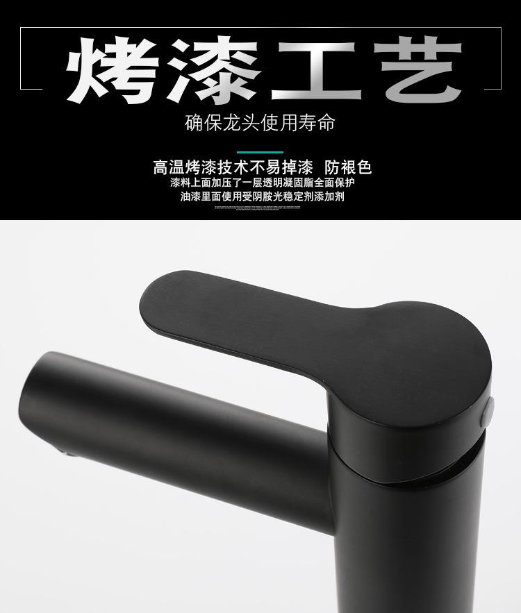 Wide handle heightening straight mouth basin faucet (without hose), Black wide handle heightening straight mou...