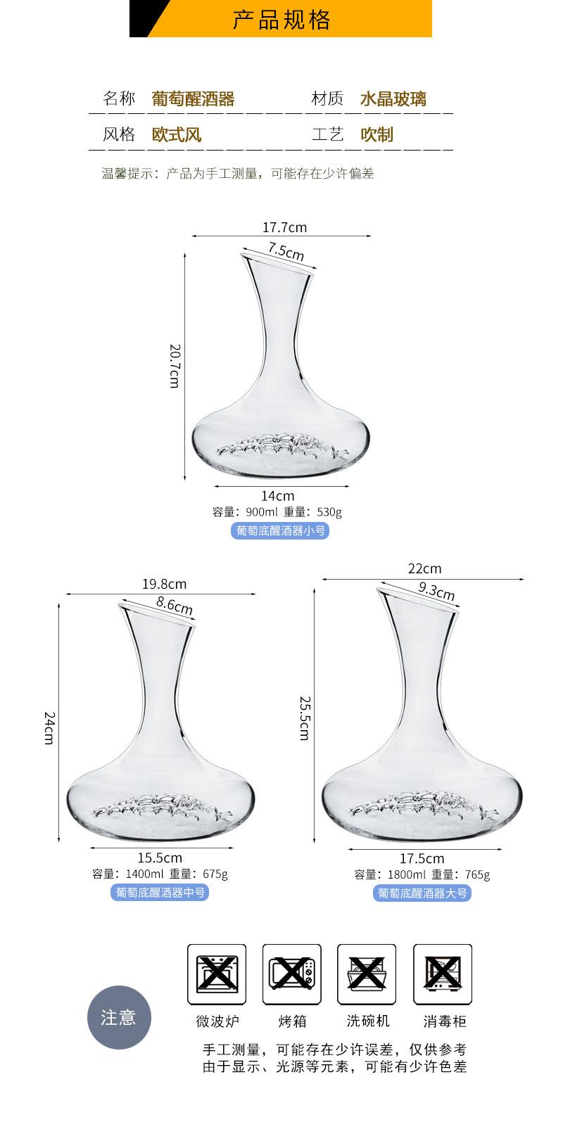 Decantador de uva tamaño mediano caja exterior: 65x43x28.5cm, peso de la caja exterior: 6kg;