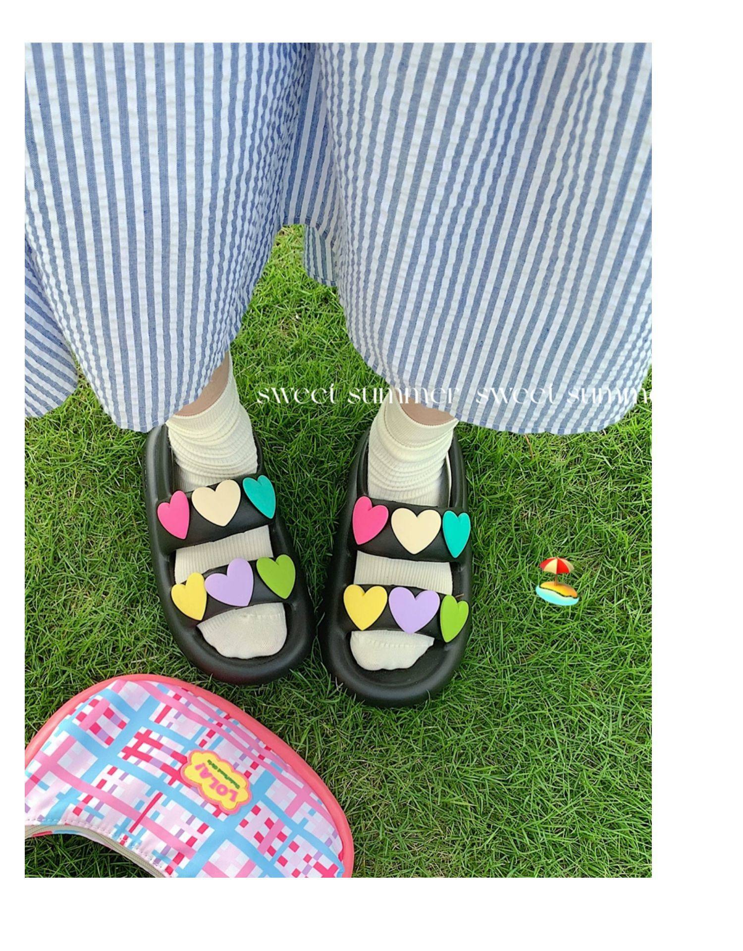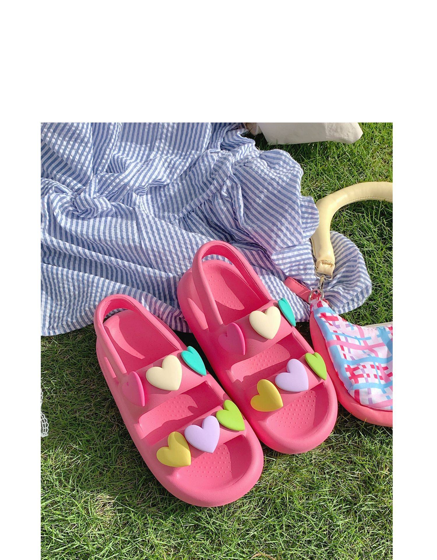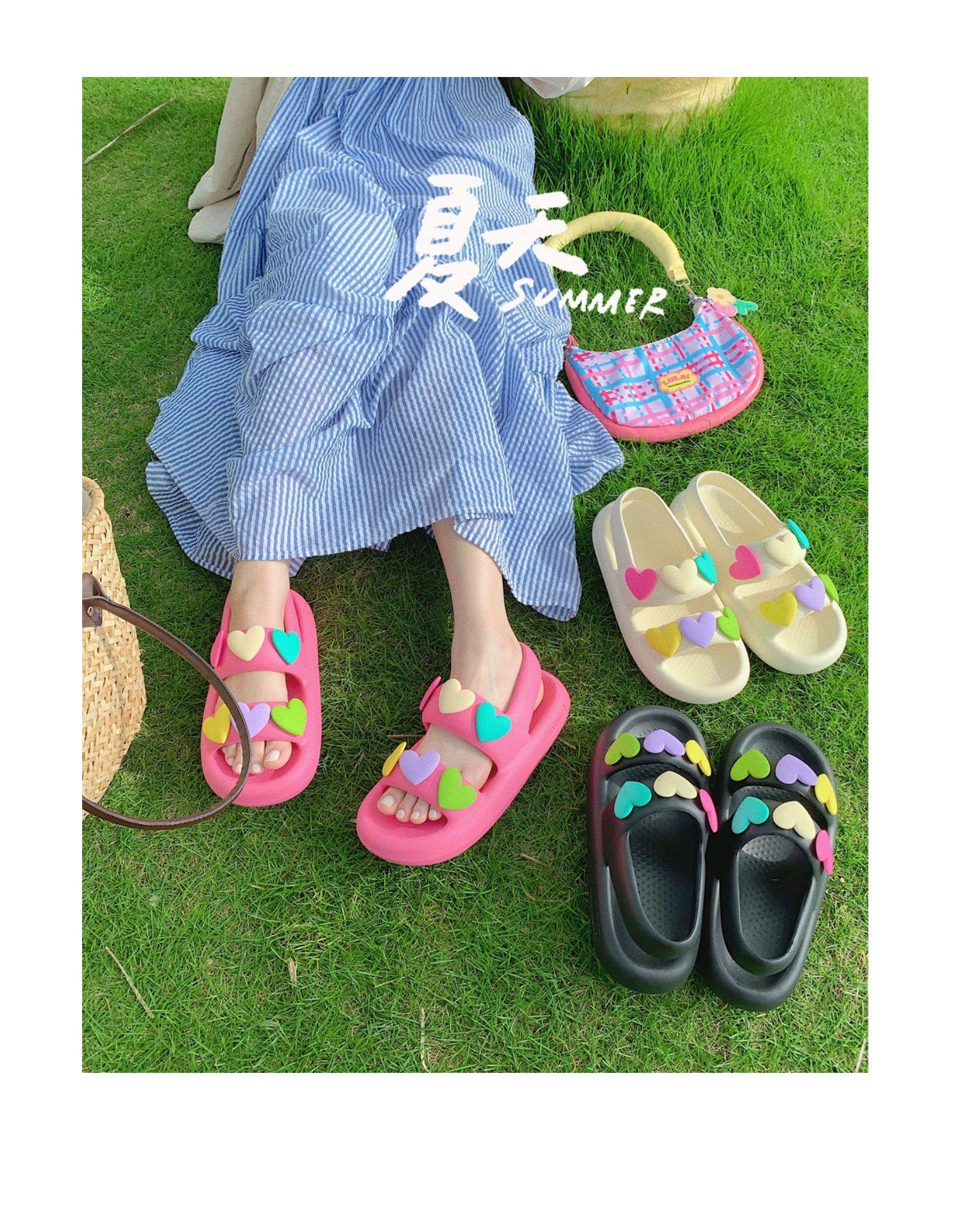 Sandalias de Doble Correa Estilo Hada Personalidad Color Dulce Amor Verano Zapatos de Mujer Suela Gruesa Suave