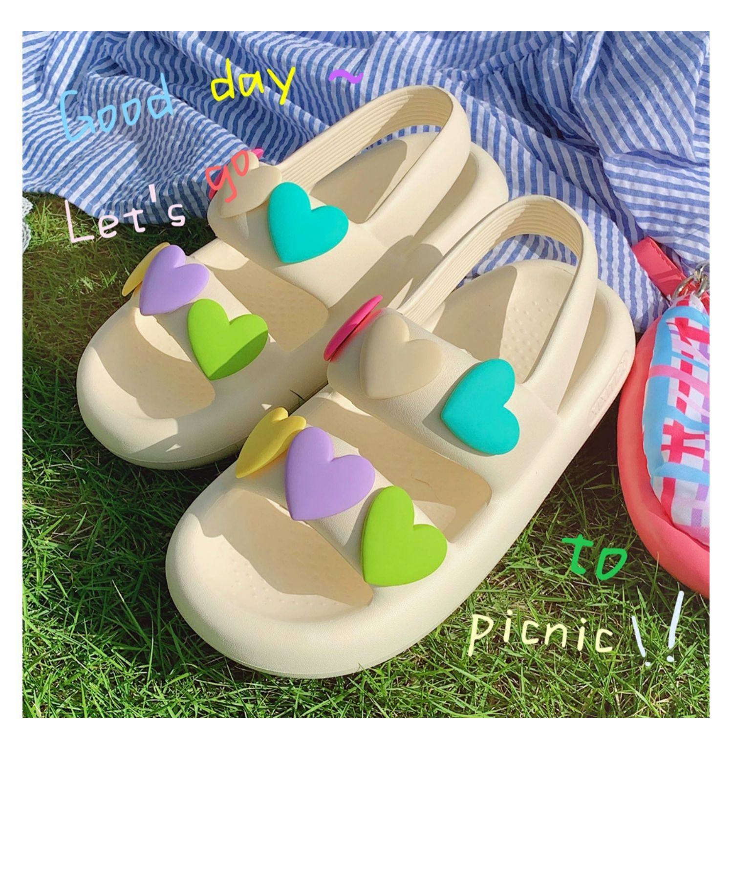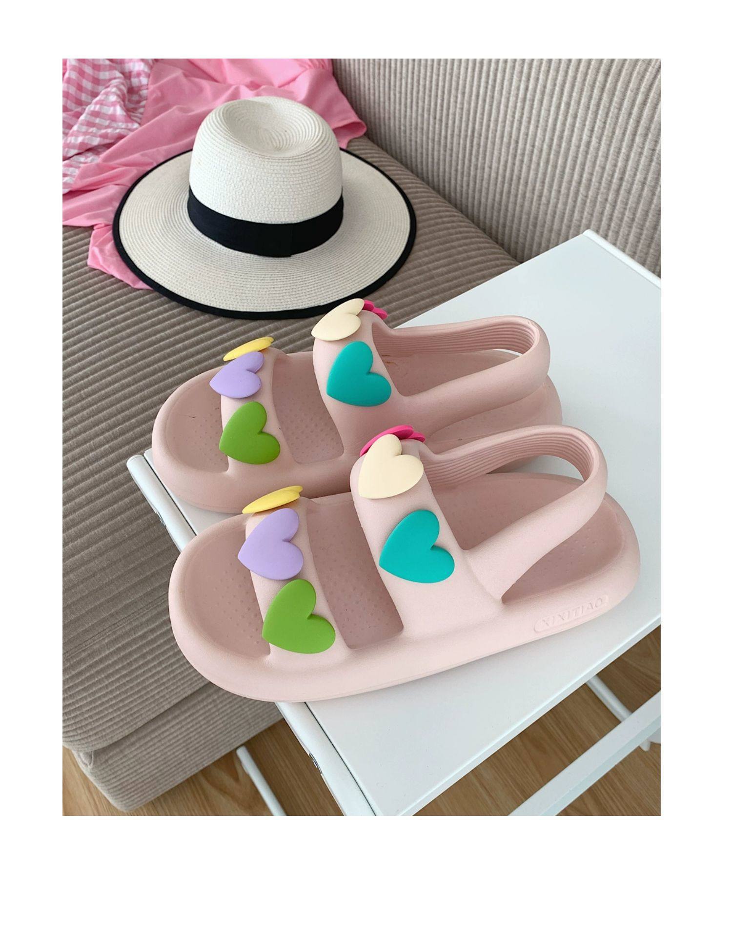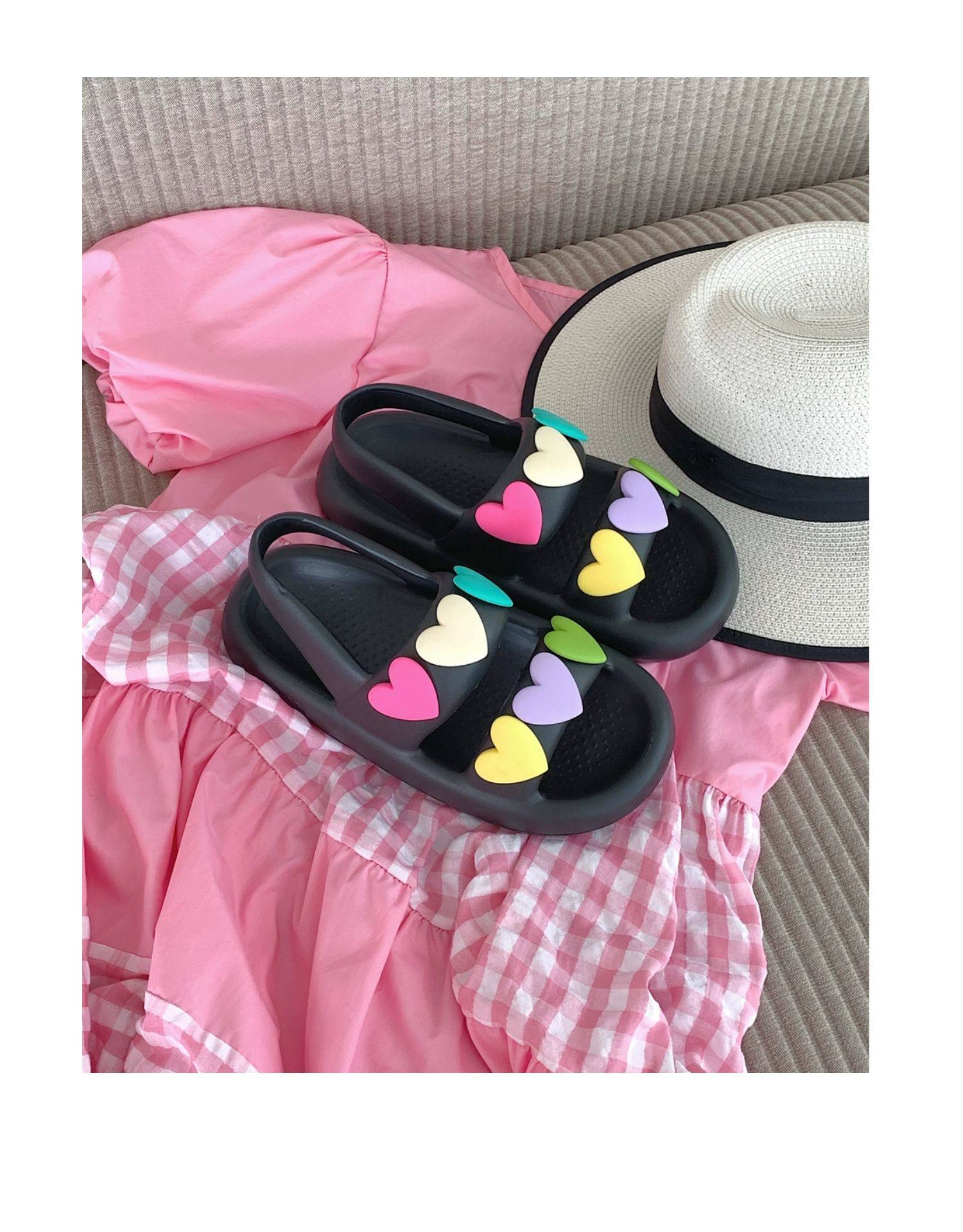 Sandalias de Doble Correa Estilo Hada Personalidad Color Dulce Amor Verano Zapatos de Mujer Suela Gruesa Suave