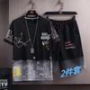 Moda de verano, nuevo traje degradado de seda de hielo, camiseta de manga corta para hombre, pantalones casuales, ropa deportiva de dos piezas para hombre atractivo