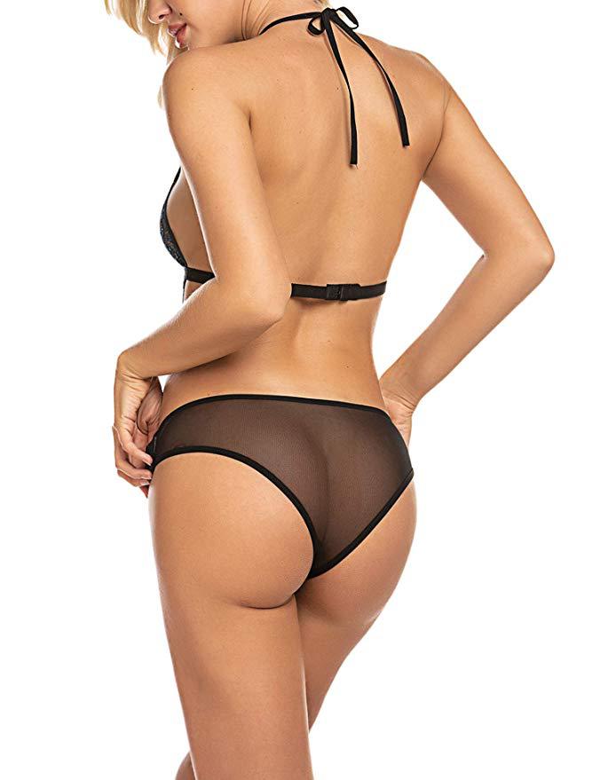 Suministro de comercio exterior de Europa y Estados Unidos, nueva ropa interior sexy de tres puntos con estampado de cuello colgante, venta directa de fábrica