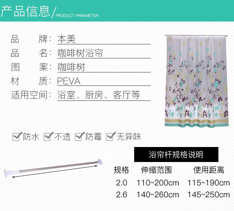 Proceso de producción: Esta cortina de ducha está hecha de material especial PEVA ecológico, al tiempo que mantiene la sensación suave original de la cortina de ducha sin ser rígida, y no se desvanecerá después de un uso prolongado, manteniendo la cortina de ducha fresca y brillante.