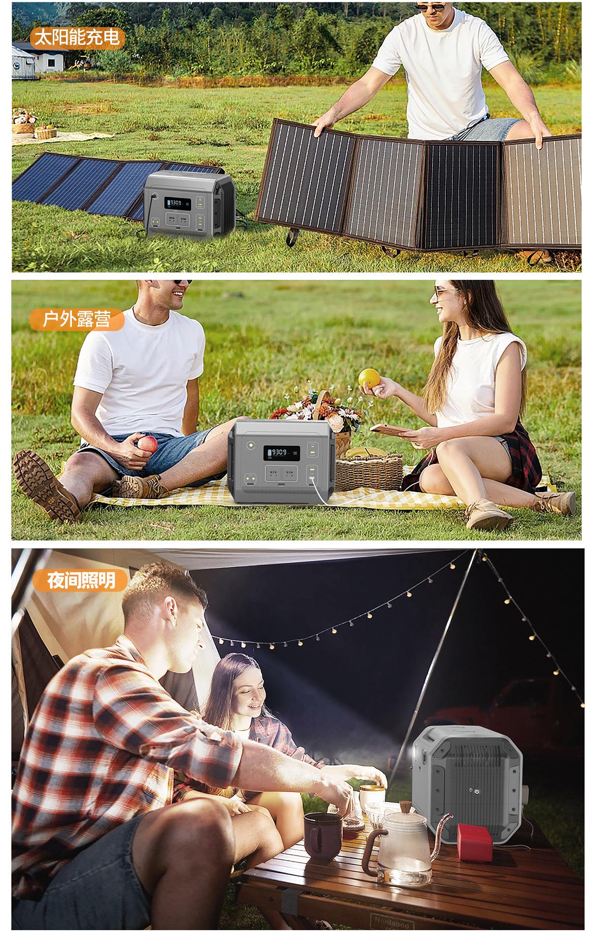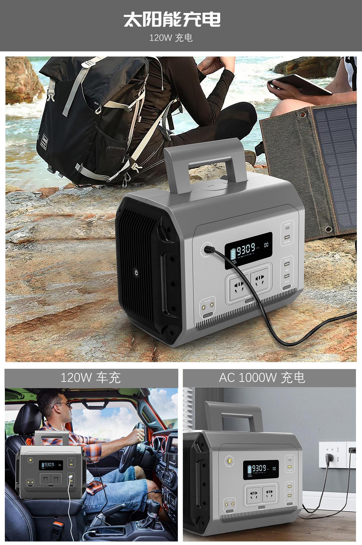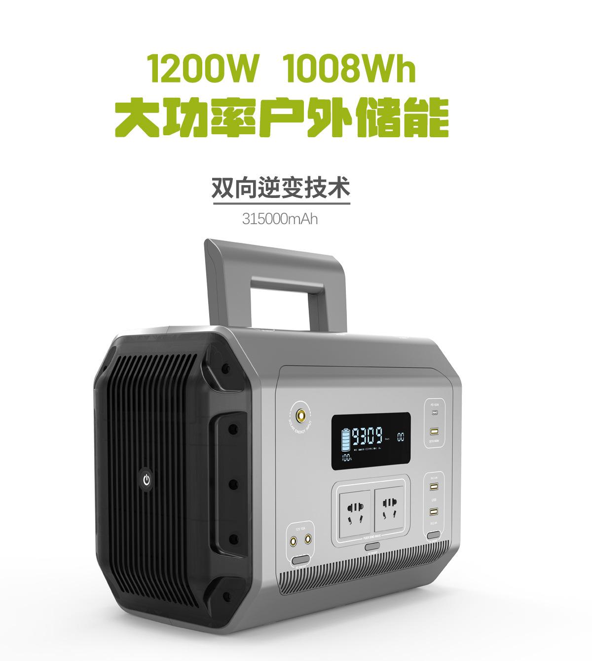 Fuente de Alimentación Exterior Batería Portátil Almacenamiento de Energía Doméstico Emergencia 1200W Banco de Energía Solar Capacidad Batería de Litio