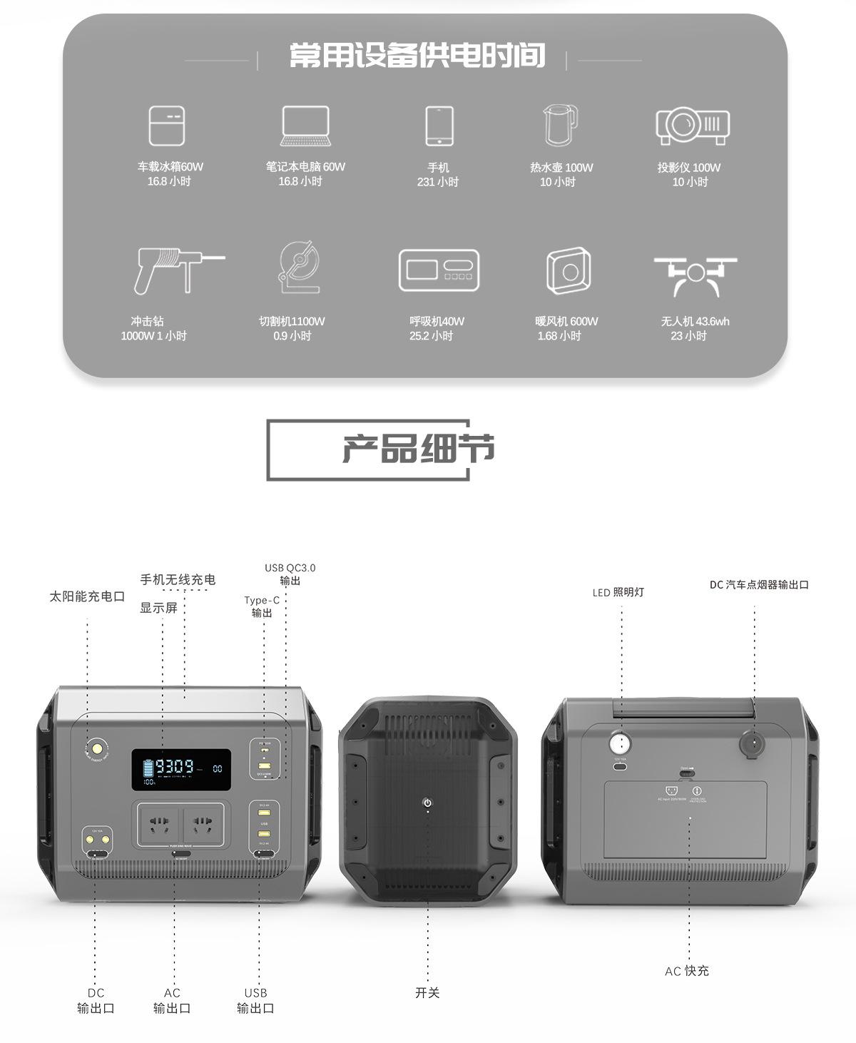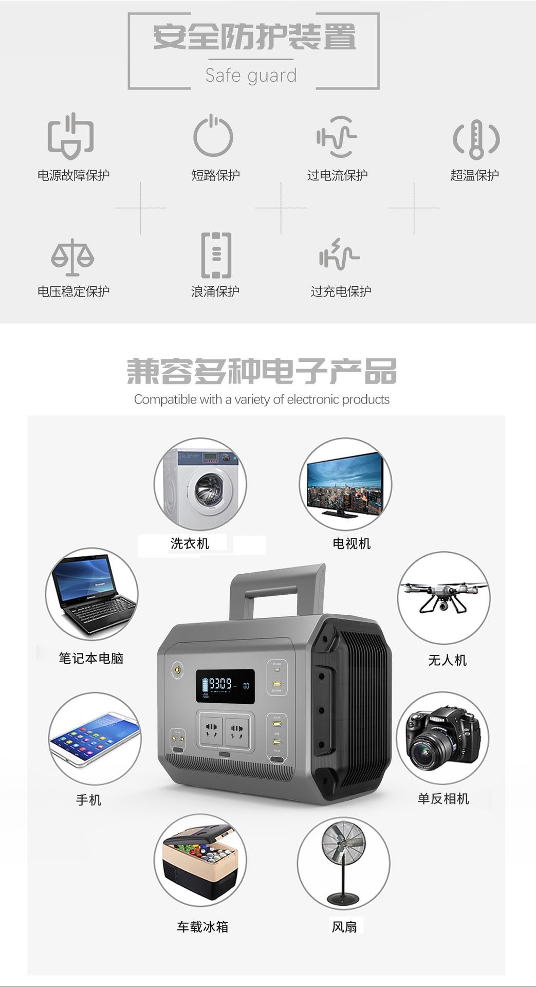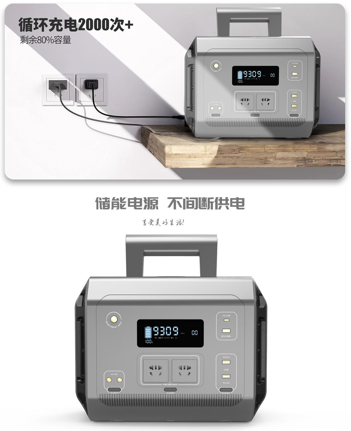 Fuente de Alimentación Exterior Batería Portátil Almacenamiento de Energía Doméstico Emergencia 1200W Banco de Energía Solar Capacidad Batería de Litio