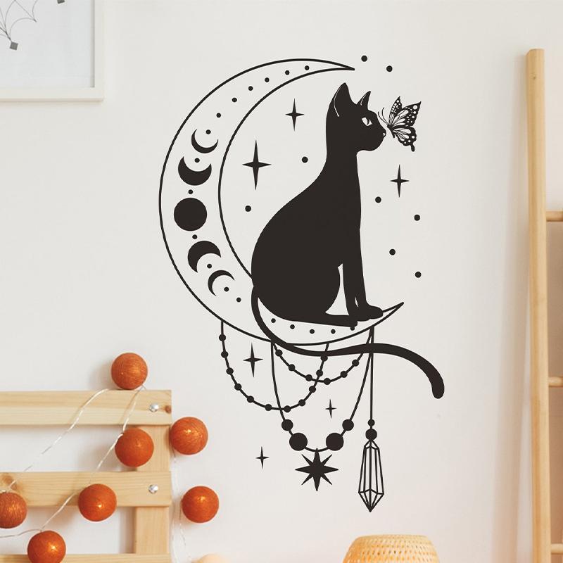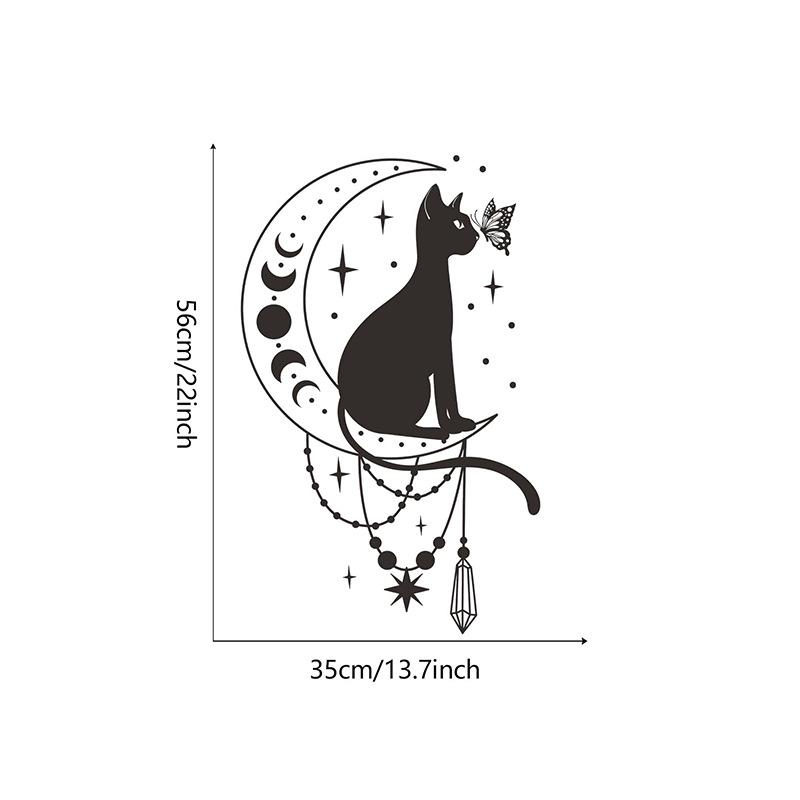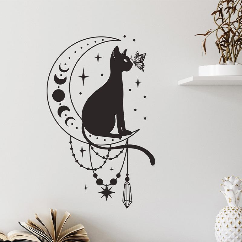 FX-B375 Pegatina de pared decorativa con diseño de gato, mariposa y luna para dormitorio, sala de estar y hogar, venta al por mayor