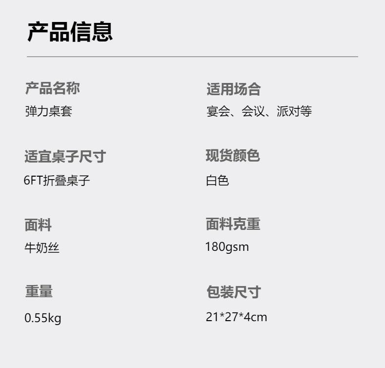 Mantel Rectangular Elástico para Banquete de Suministro Directo Transfronterizo de 6 pies, Cubremesa de Spandex para Hotel, Fiesta, Conferencia, Mantel para Mesas Largas