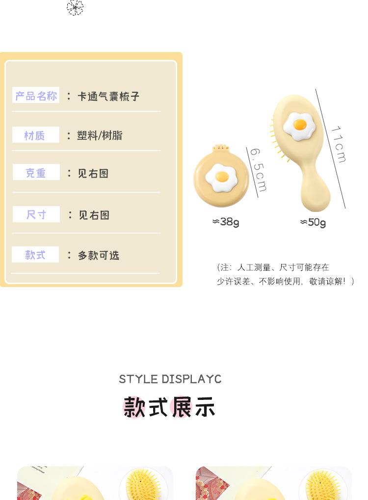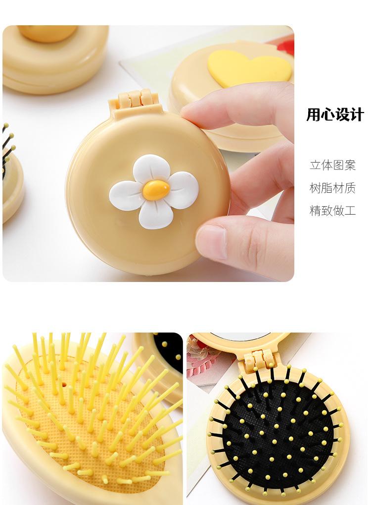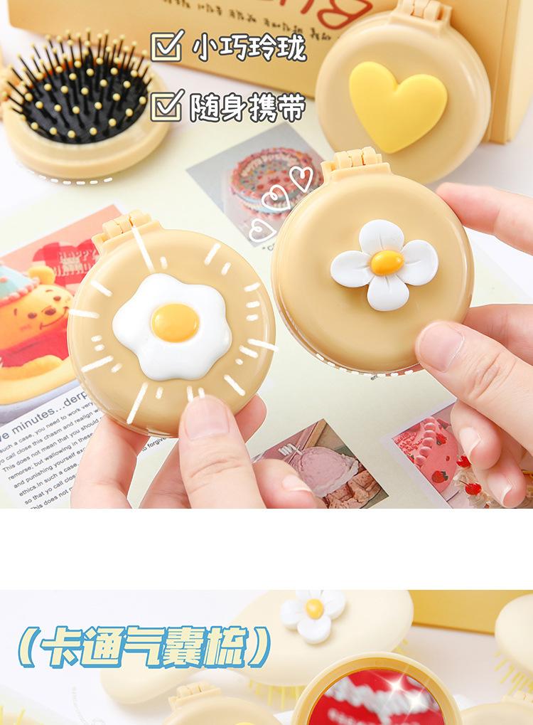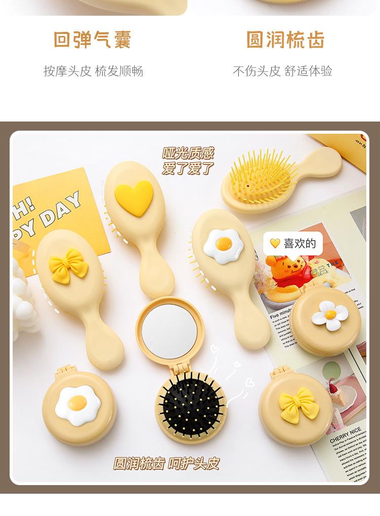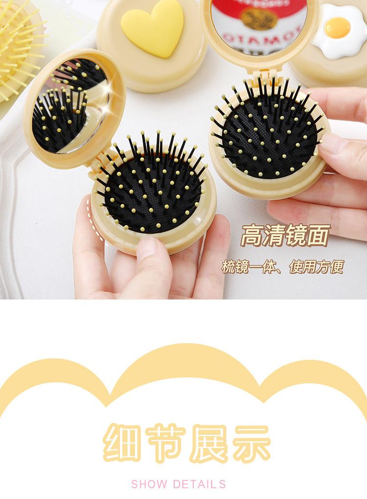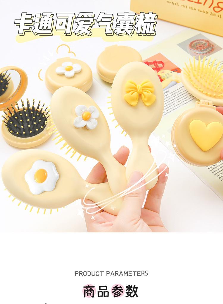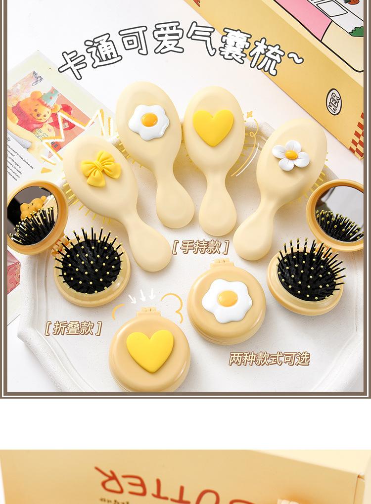 Peine de bolsa de aire, lindo peine de masaje plegable con forma de oso, peine con cojín de aire, mini peine portátil con espejo, una pieza, envío directo
