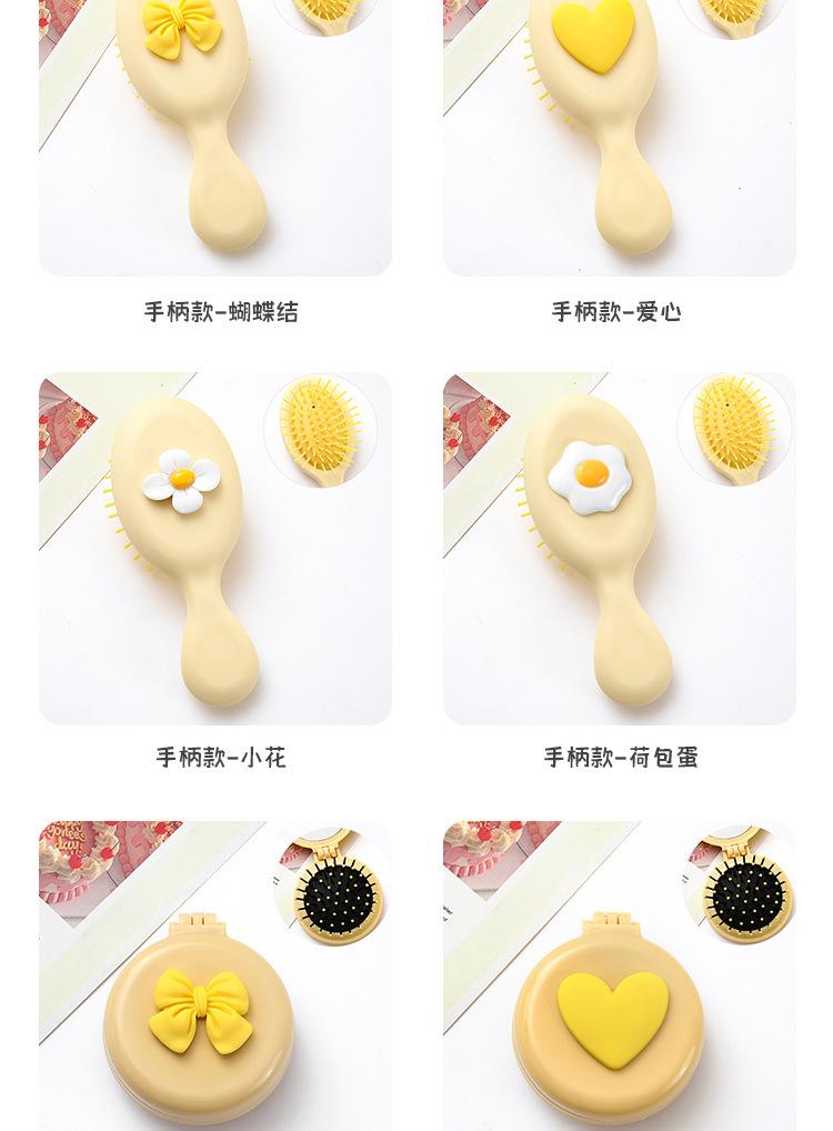 Peine de masaje de cabeza con cojín de aire de plástico portátil con diseño de corazón de niña, con espejo de maquillaje