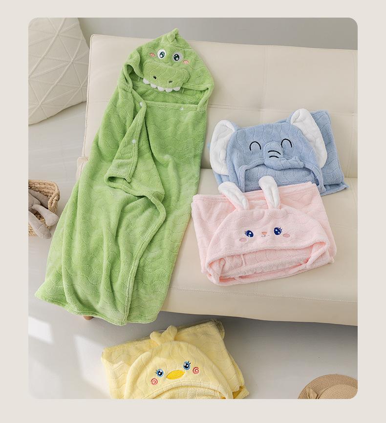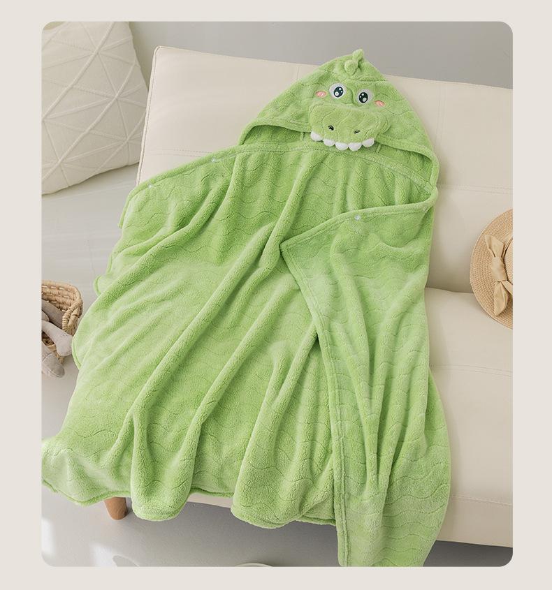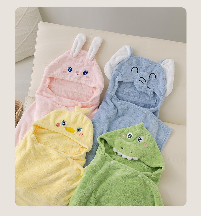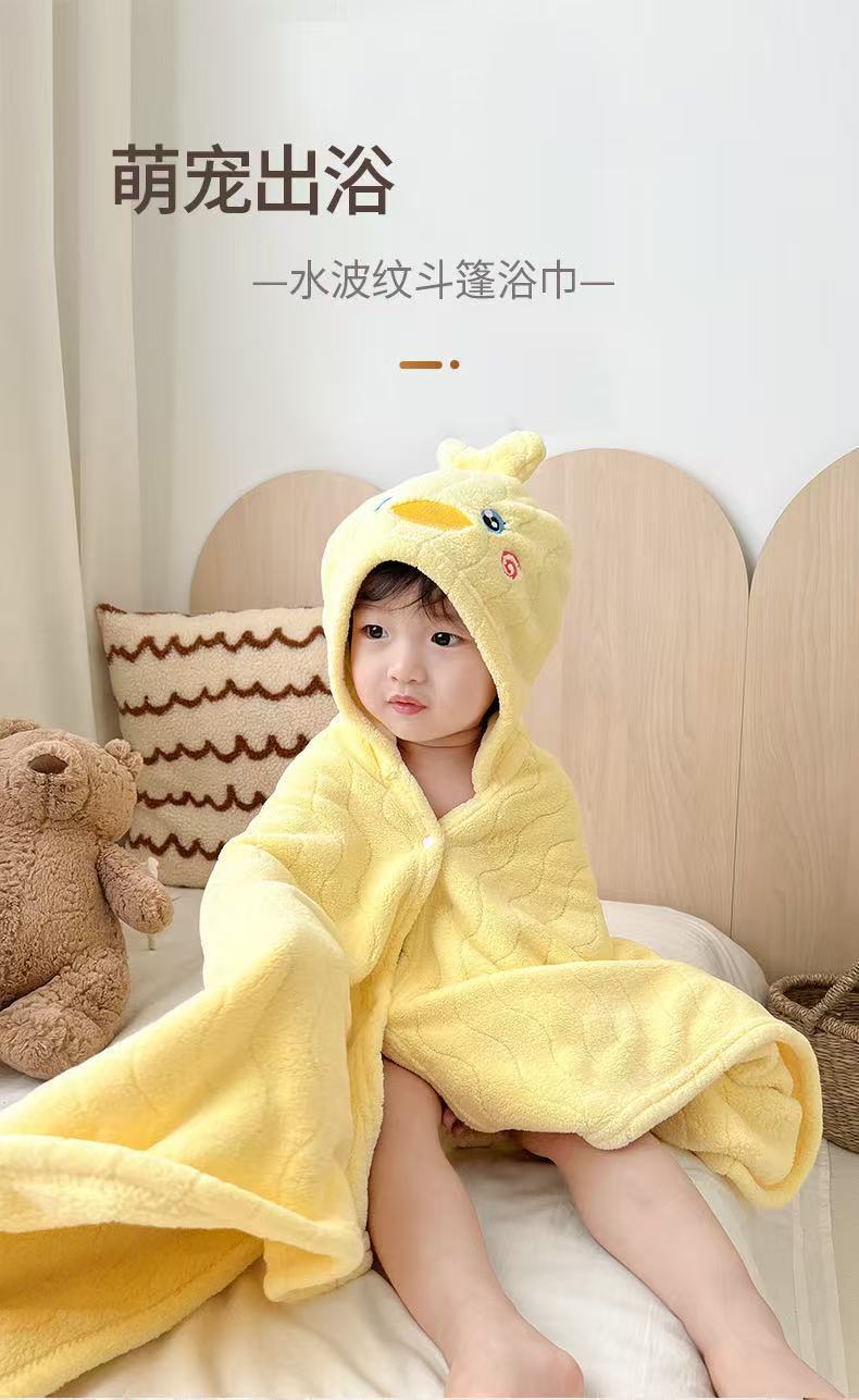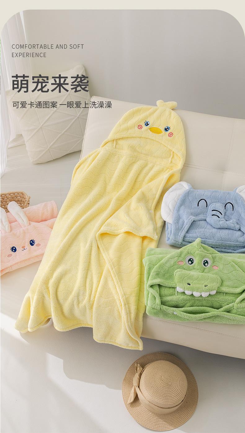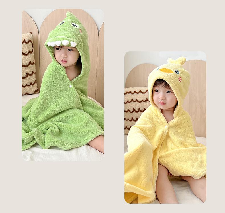 Capa de dibujos animados de vellón coral, toalla de baño para bebé con capucha, capa con capucha absorbente para niños, bata de baño envuelta y usable al por mayor