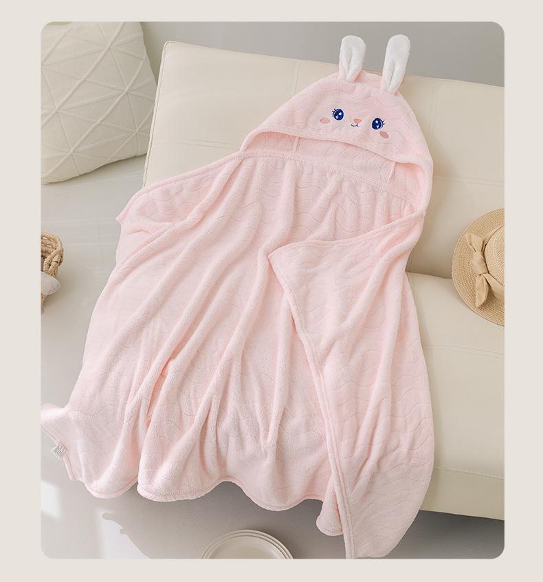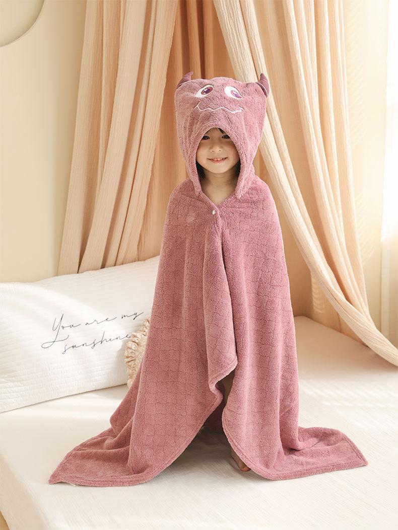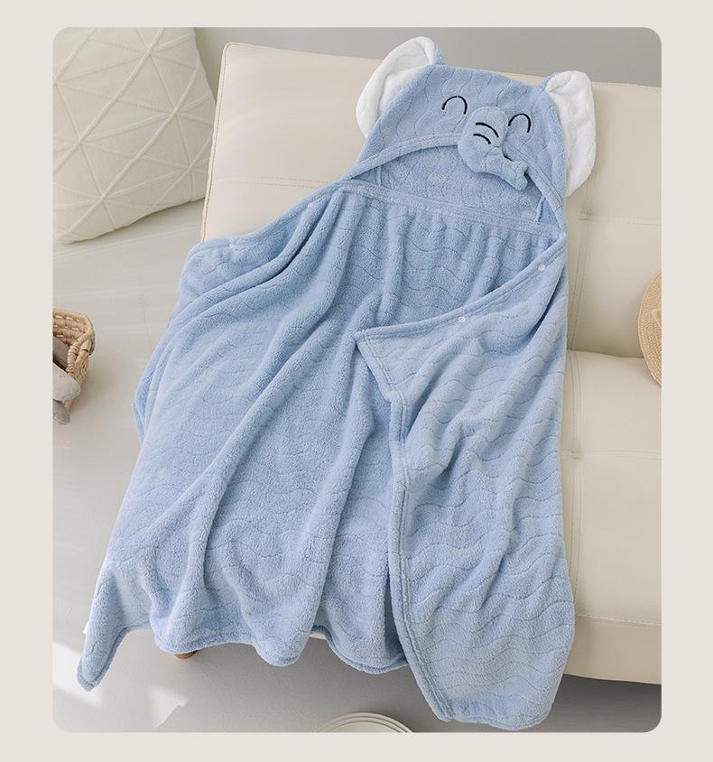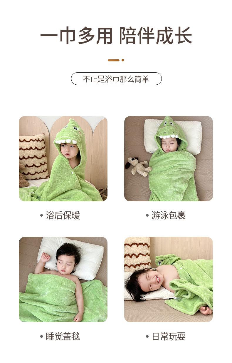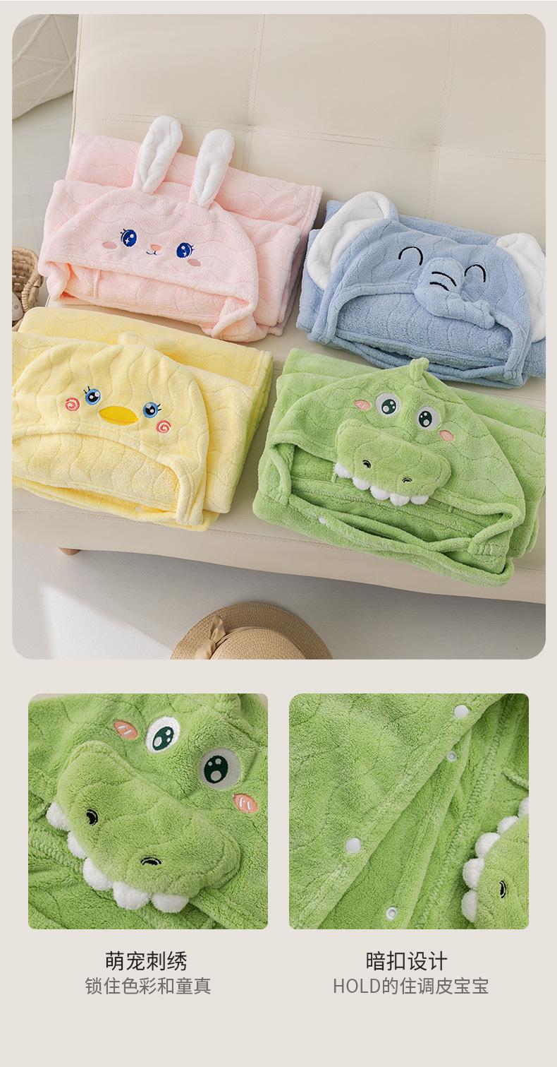 Capa de dibujos animados de vellón coral, toalla de baño para bebé con capucha, capa con capucha absorbente para niños, bata de baño envuelta y usable al por mayor
