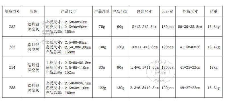 Z55-space gray, Z55-haoyue silver, Z53-space gray, Z53-haoyue silver, Z52-space gray, Z52-haoyue silver