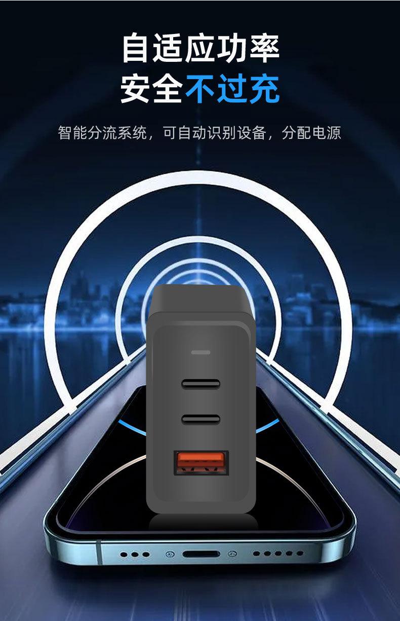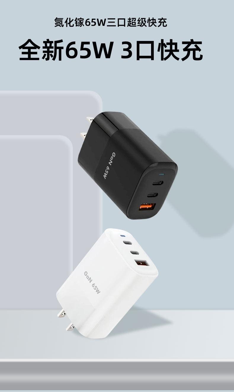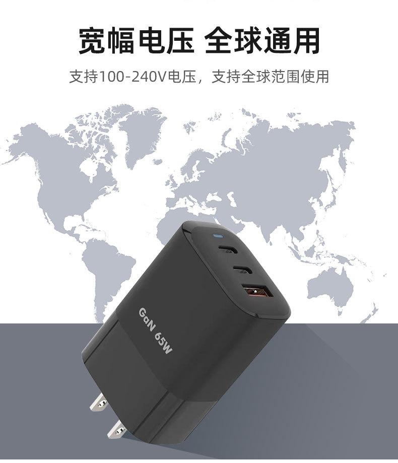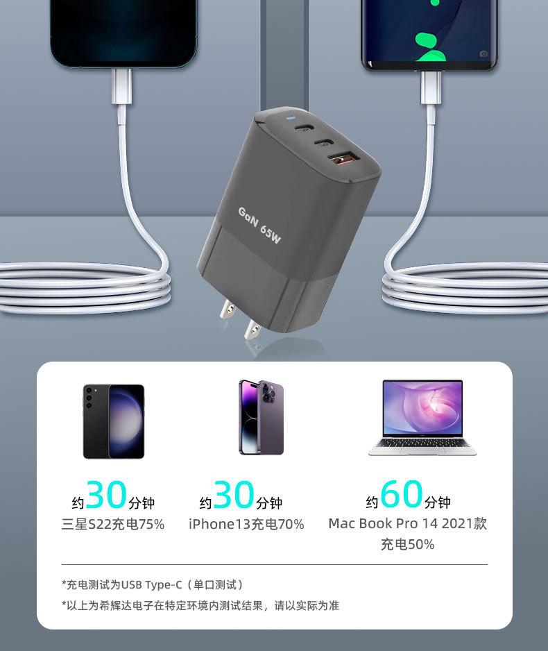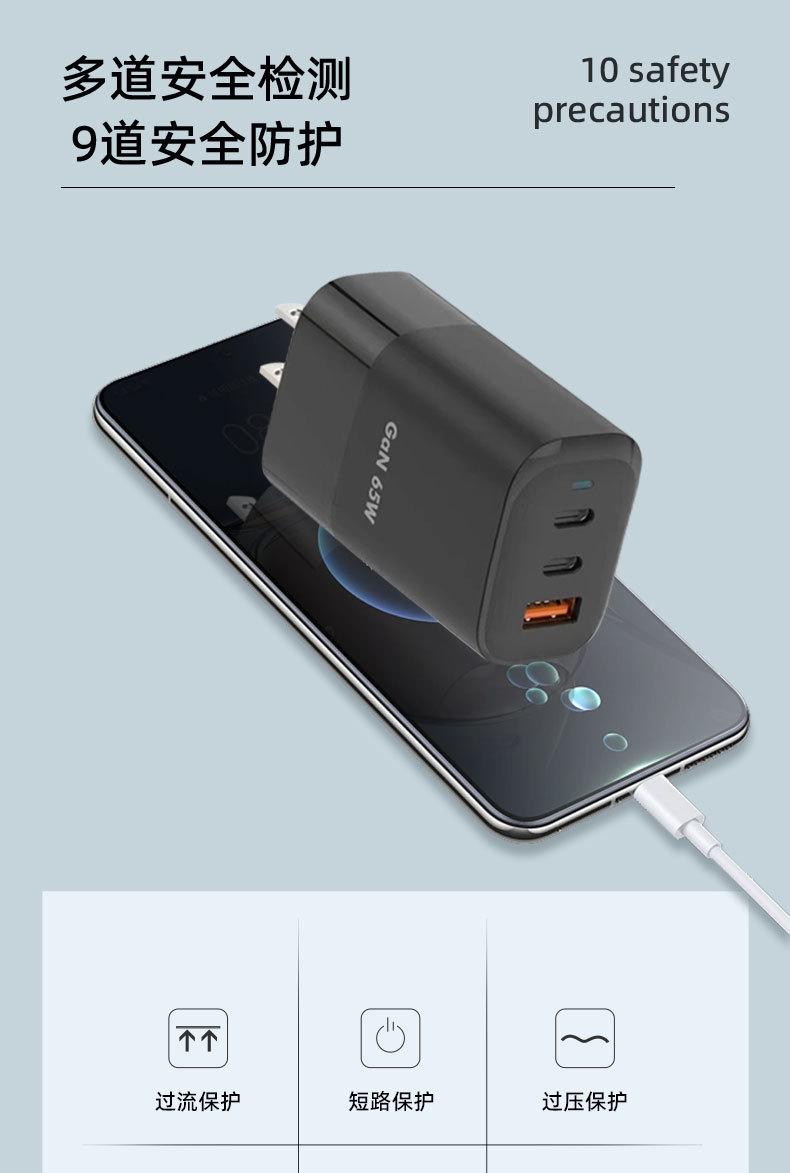 Cargador de nitruro de galio de 65 W, estándar estadounidense, apto para teléfonos móviles, portátiles, tabletas y otros dispositivos Apple, Samsung y Huawei.