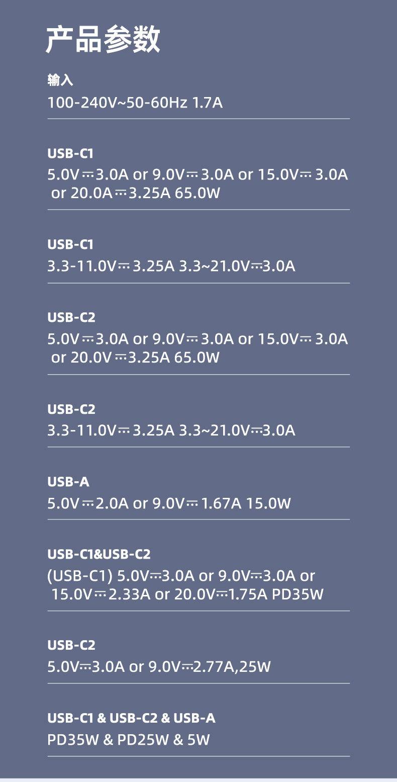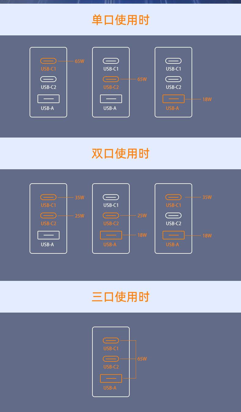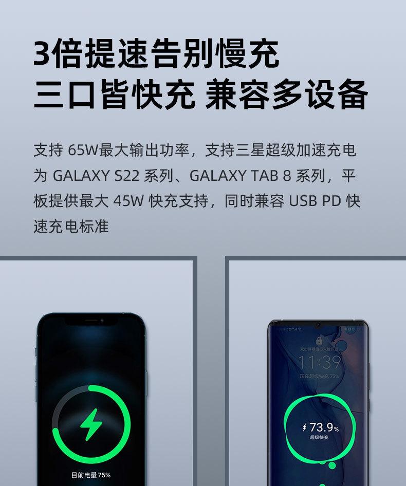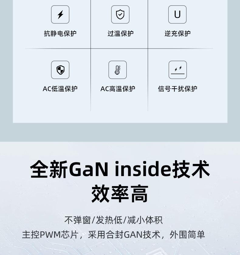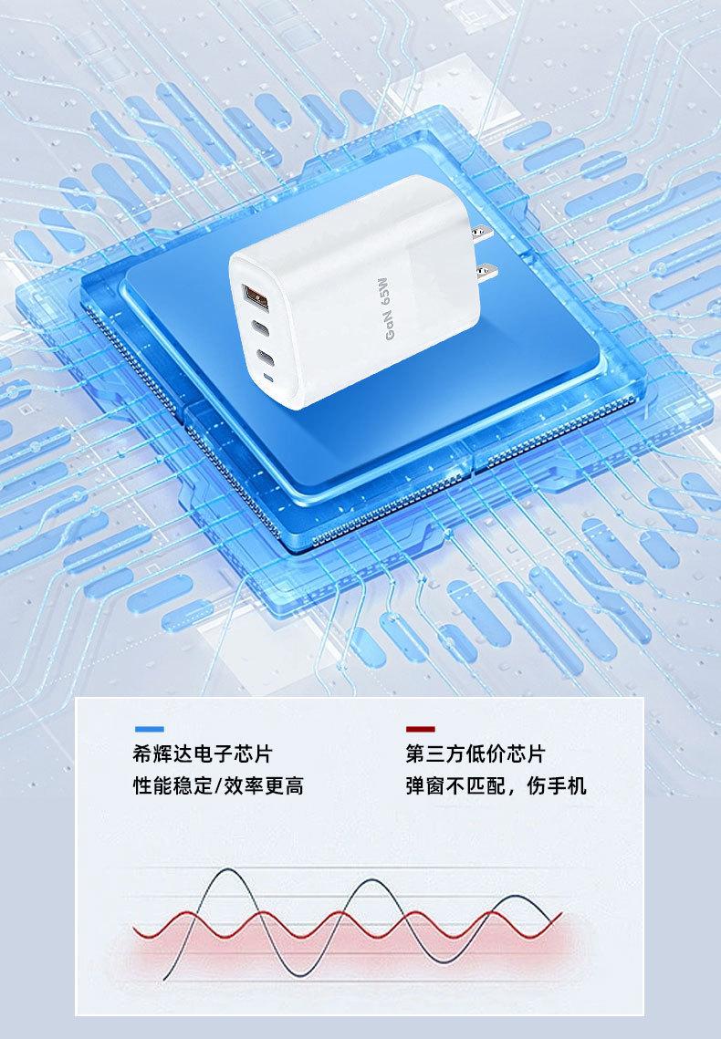 Cargador de nitruro de galio de 65 W, estándar estadounidense, apto para teléfonos móviles, portátiles, tabletas y otros dispositivos Apple, Samsung y Huawei.