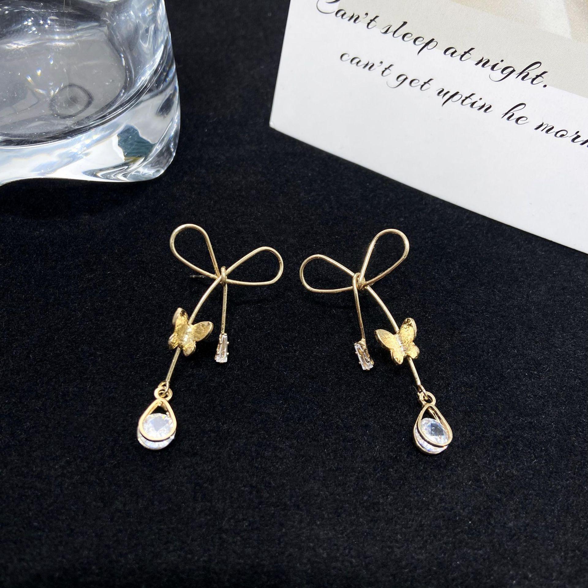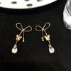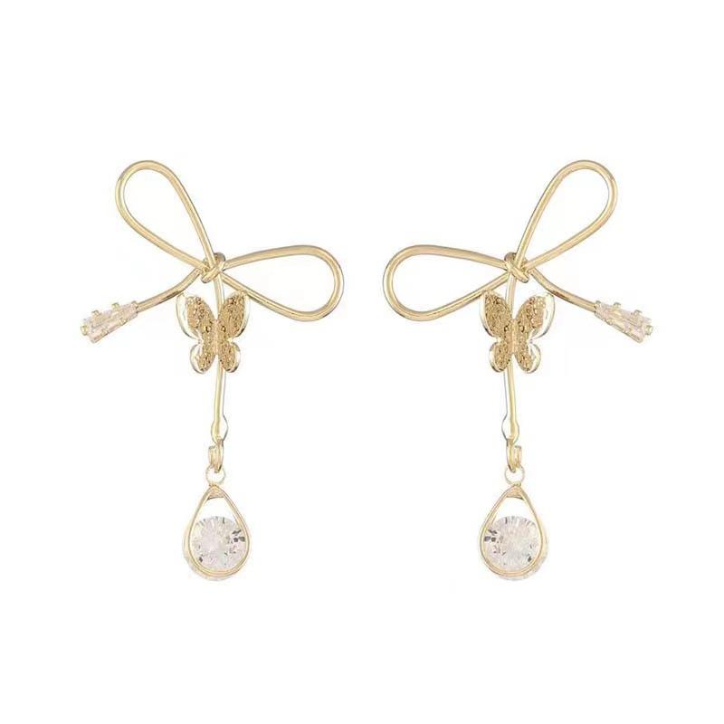 Pendientes de lazo retro francés para mujer, nuevo estilo, diseño de nicho de lujo ligero, sencillos, combinables, exquisitos, de alta gama.