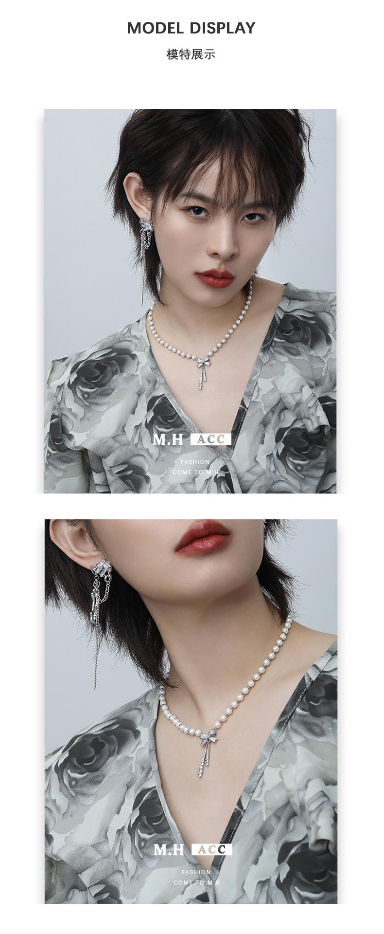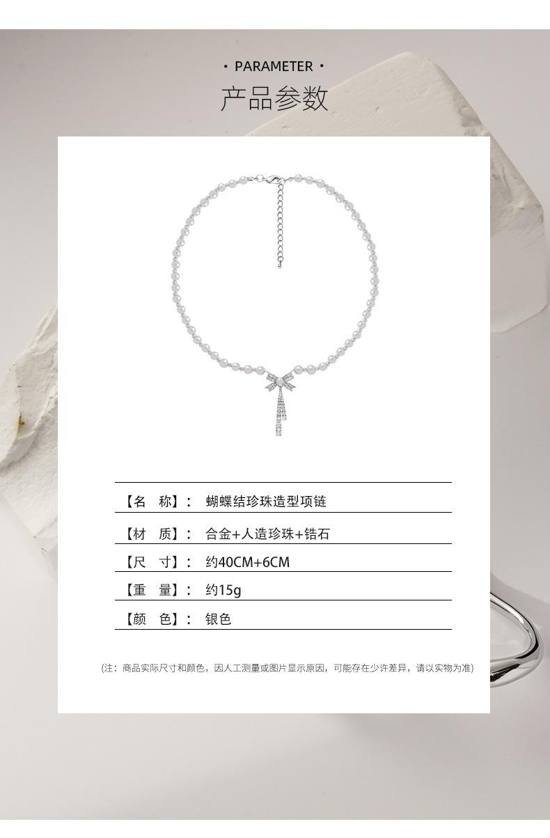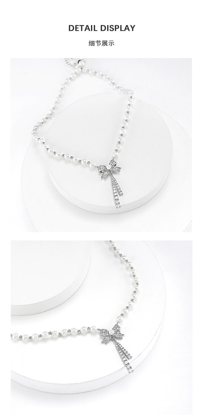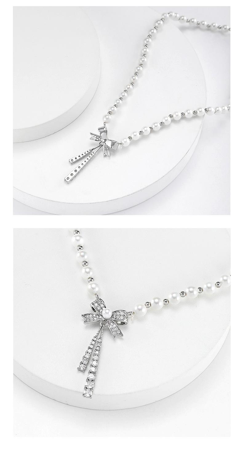 Collar de perlas con lazo para mujer, elegante collar cruzado de alta calidad que combina con todo, exquisito diseño de nicho de moda, cadena de clavícula