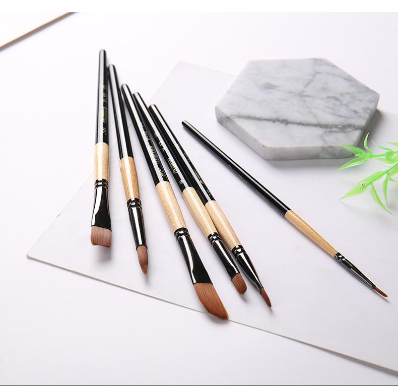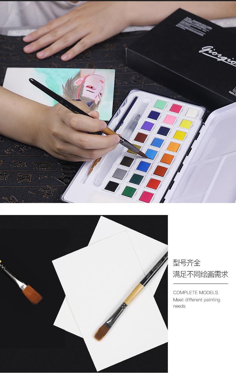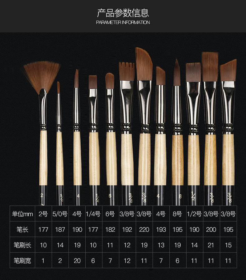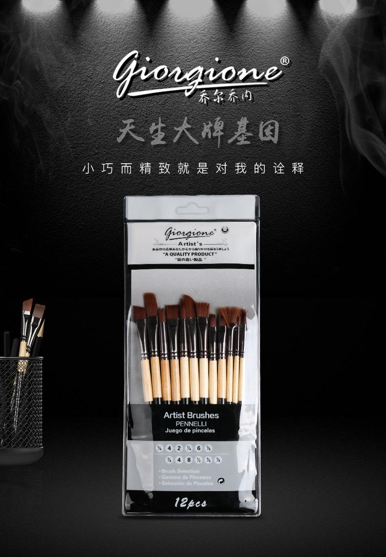 Giorgione Paquete de 12 Pinceles de Lana de Nailon con Mango Marrón para Gouache, Acuarela, Óleo, para Estudiantes de Arte, Venta al por Mayor