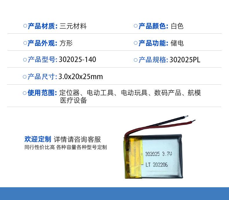 Batería de litio 302025 3.7V Anti-pérdida audio inteligente aire acondicionado 140mAh batería de polímero de litio