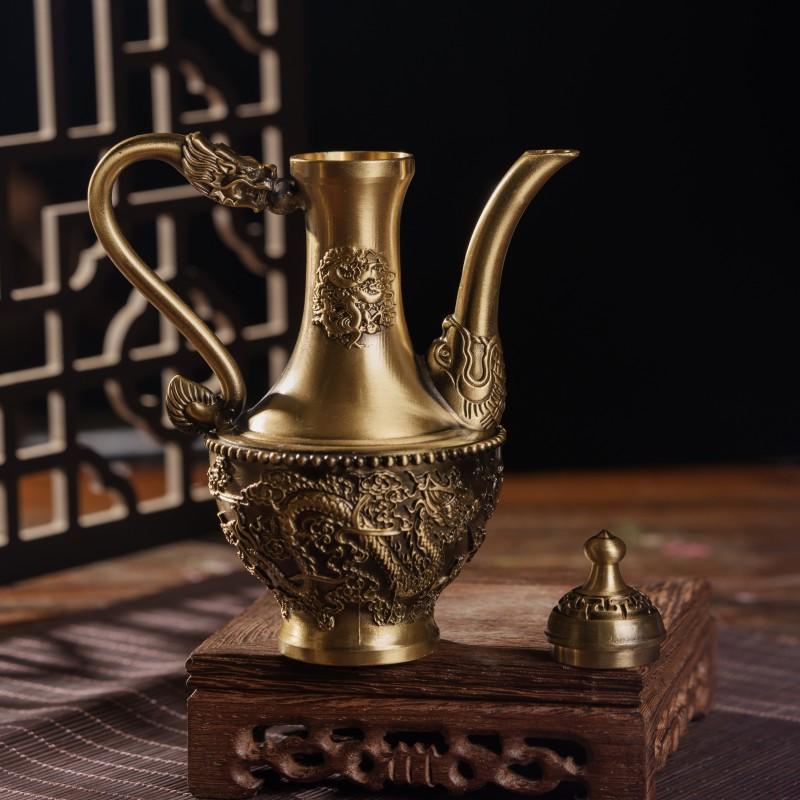 Dragón y Fénix de Latón Botella de Vino Hogar Escritorio Adornos Artesanales de Latón Cobre Botella de Vino Boda Cobre Retro Hogar Boda