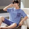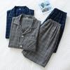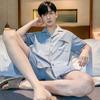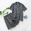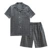 Pijama Simple de Cuadros para Hombre Estilo Coreano de Verano Pantalones Cortos de Manga Corta con Solapa Casual Algodón Cómodo Conjunto de Ropa para el Hogar para Hombre