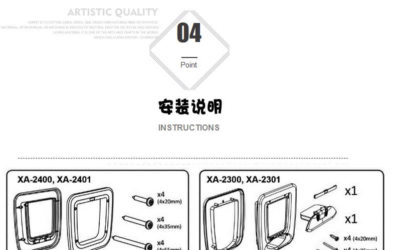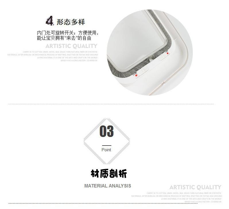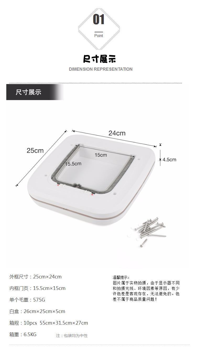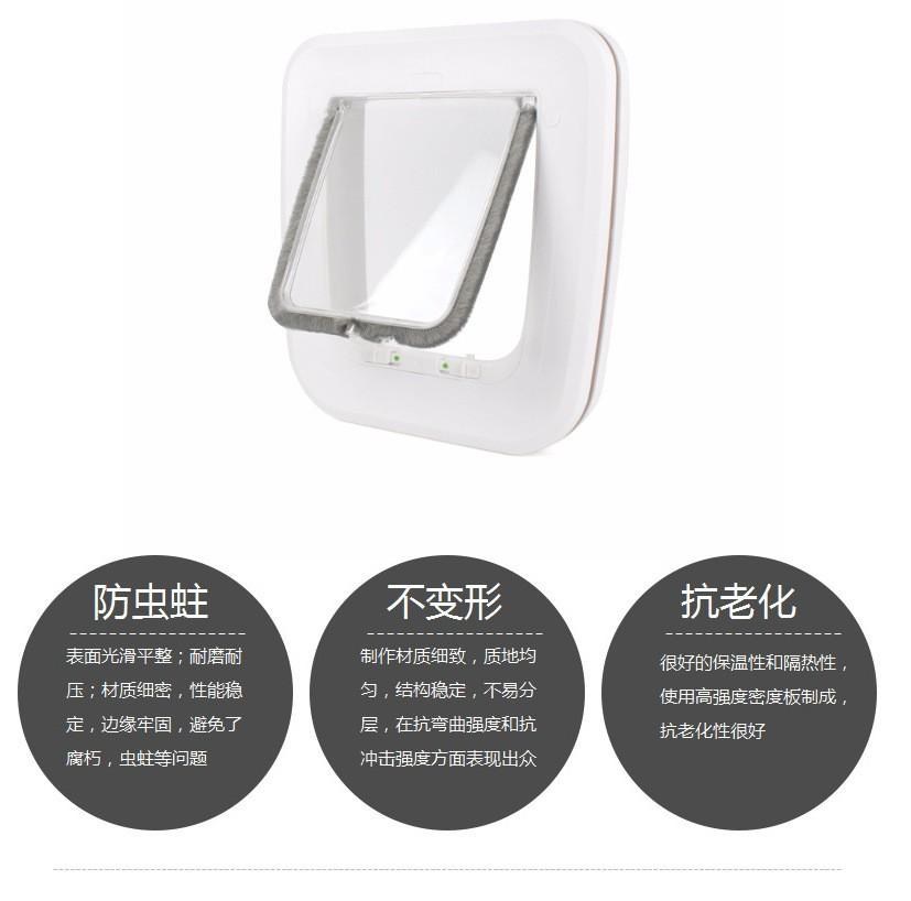 Se puede instalar en puertas de madera. El marco de puerta de ABS de alto rendimiento y la hoja de puerta de PC están combinados y son duraderos. Instalar según la versión cortada, simple y conveniente. Cuatro formas, adecuadas para los hábitos diarios de los gatos~!