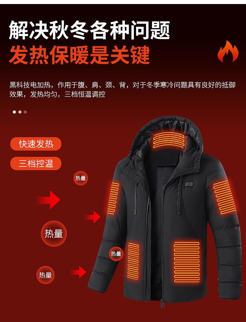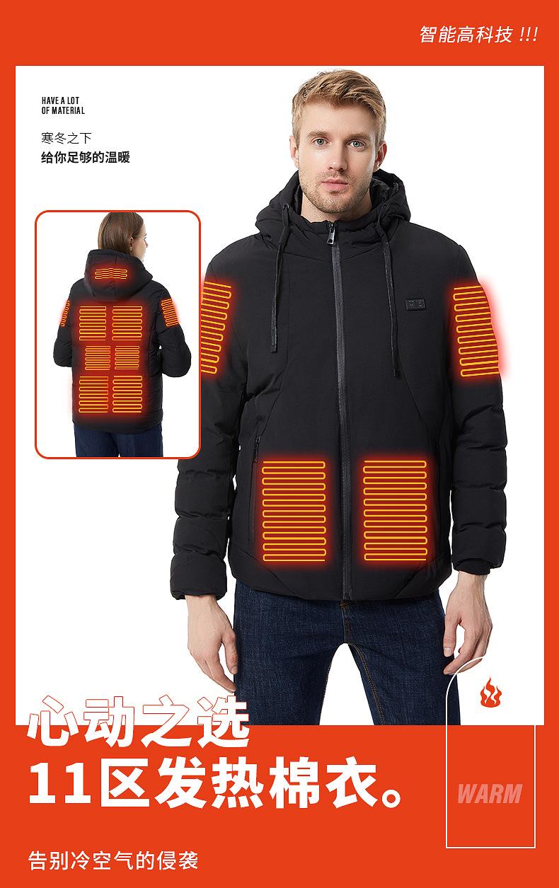 Nueva chaqueta acolchada de algodón con capucha y calefacción inteligente de 11 zonas con doble control, cálida chaqueta acolchada de algodón para hombre, chaqueta calefactora de fibra de carbono para exteriores