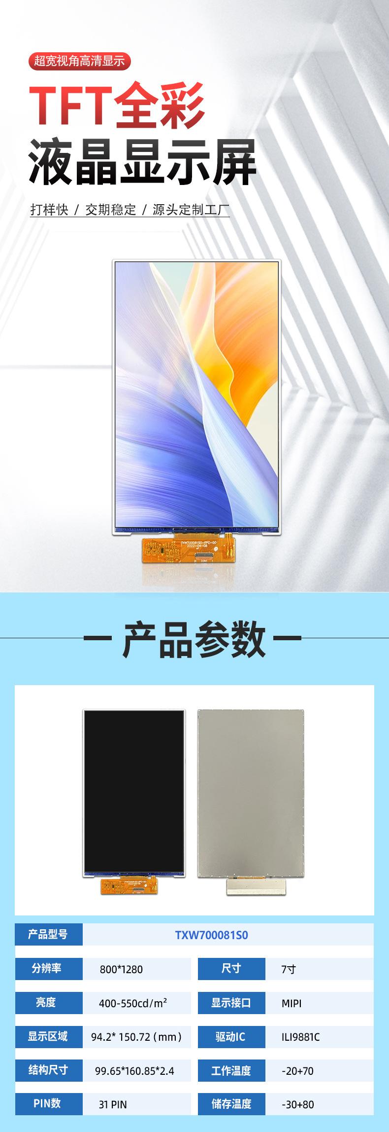 Pantalla de aprendizaje IPS HD de 7 pulgadas y 800 x 1280, para pagos móviles, seguridad, control de acceso, IoT médico y electrodomésticos.