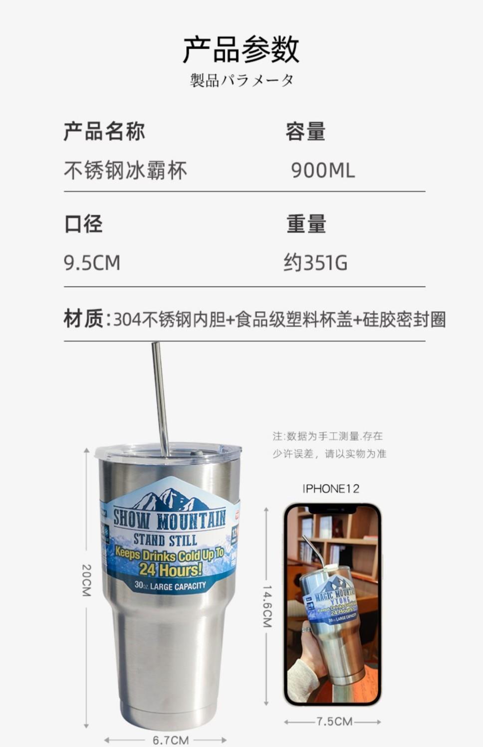 Termo de acero inoxidable 304 de doble capa con ventosa de grado alimenticio, gran capacidad, para oficina, coche, hielo frío