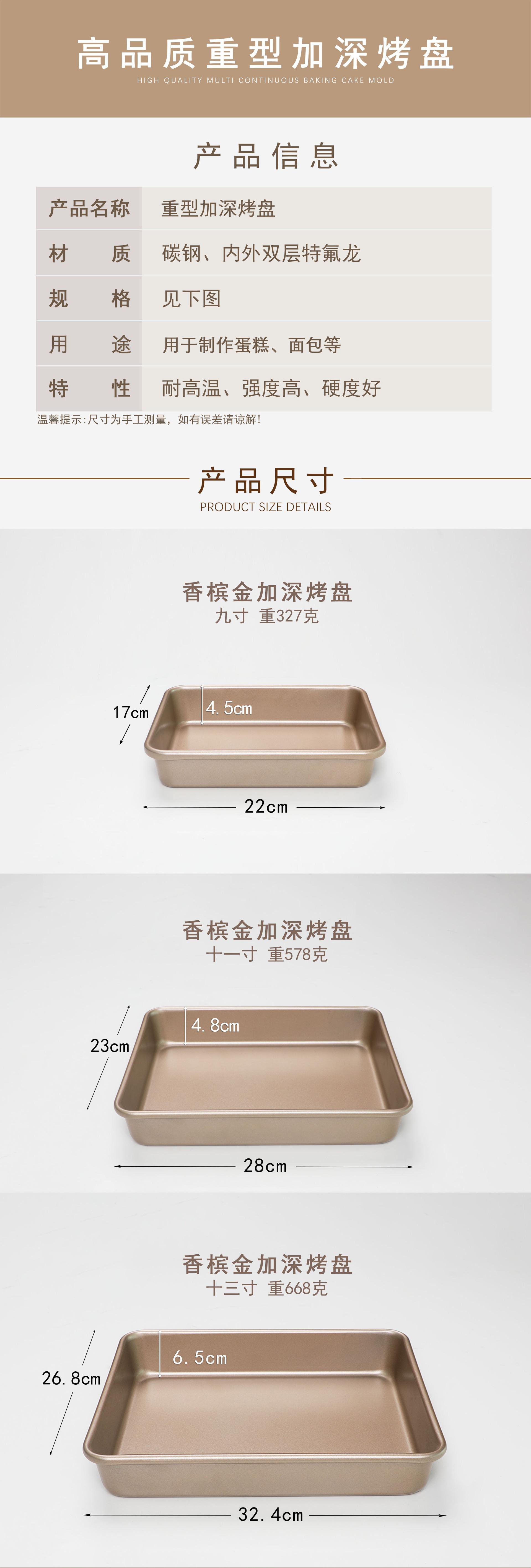 Molde Rectangular Profundo de 9 Pulgadas 11 pulgadas 13 pulgadas Acero al Carbono Pastel Pizza Pan Antiadherente Herramienta para Hornear
