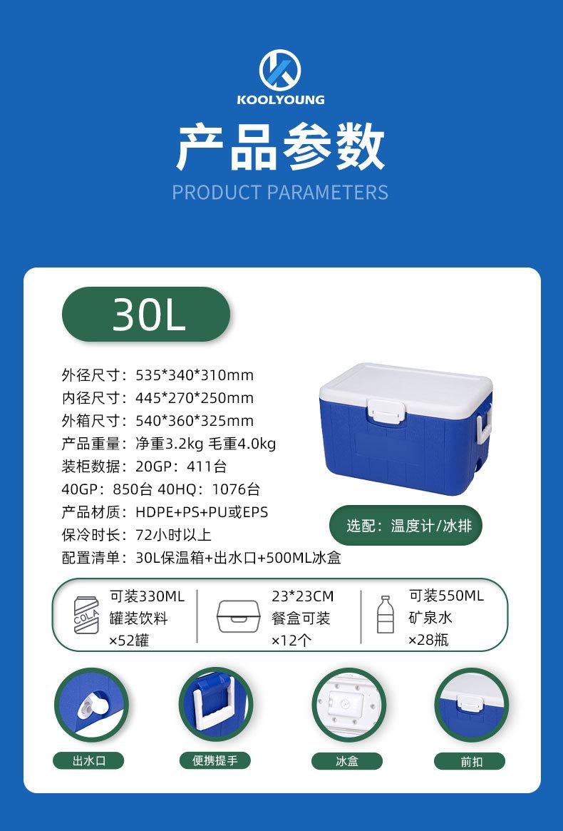 30l blue [standard eps] keeps cold for 24 hours and comes with water outlet, [commercial selection] 30l blue [...