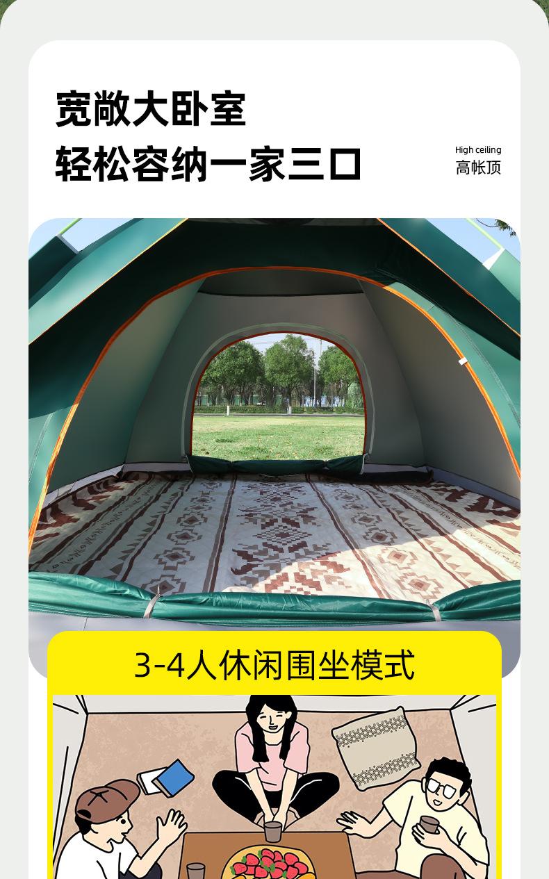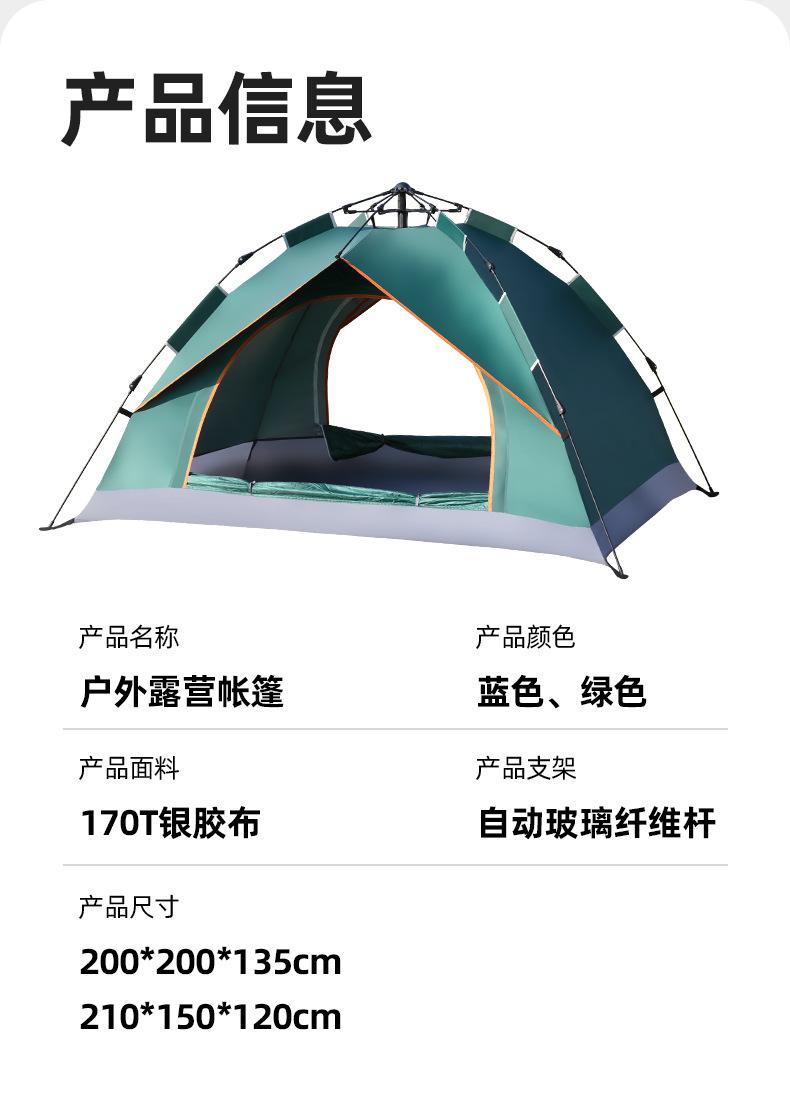 Tienda de Campaña para Exterior Totalmente Automática Portátil Camping Playa Camping Falsa Doble Capa Plegable Apertura Rápida Impermeable Tienda sin Construcción