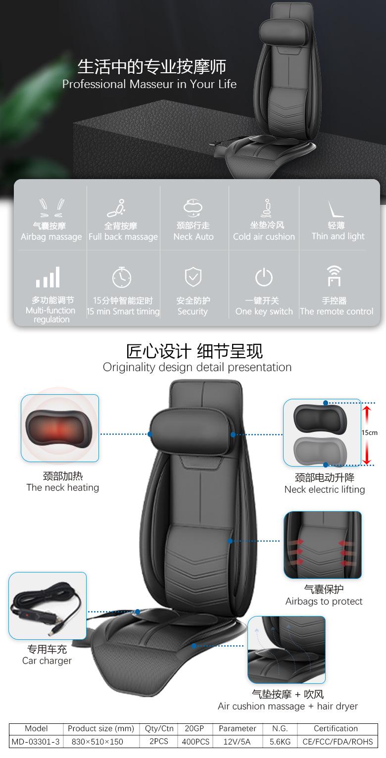 Masajeador de Coche Cuello, Espalda, Cintura y Cadera Cojín de Masaje para Coche y Hogar Cojín para Silla Calentado Soplador Vibración Uso en Coche