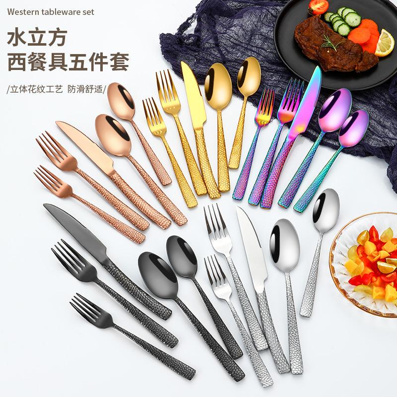 Cubeta de agua de Amazon transfronteriza, vajilla de acero inoxidable, 5 piezas principales, cuchillo, tenedor y cuchara para carne de hotel o restaurante occidental, venta al por mayor