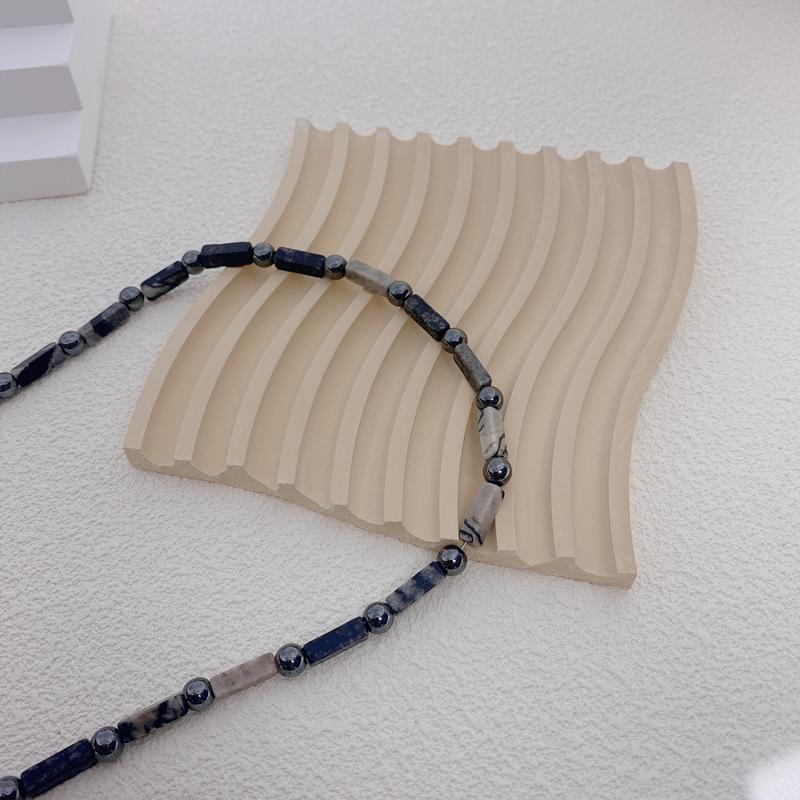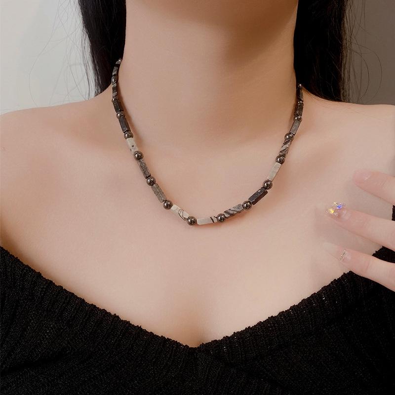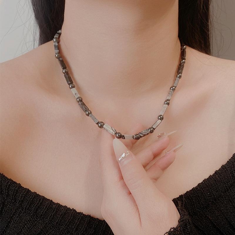 Collar de cuentas de bambú con textura de diseño vintage para hombres y mujeres, collar de piedra natural de lujo de alta gama, cadena, joyería para el cuello.