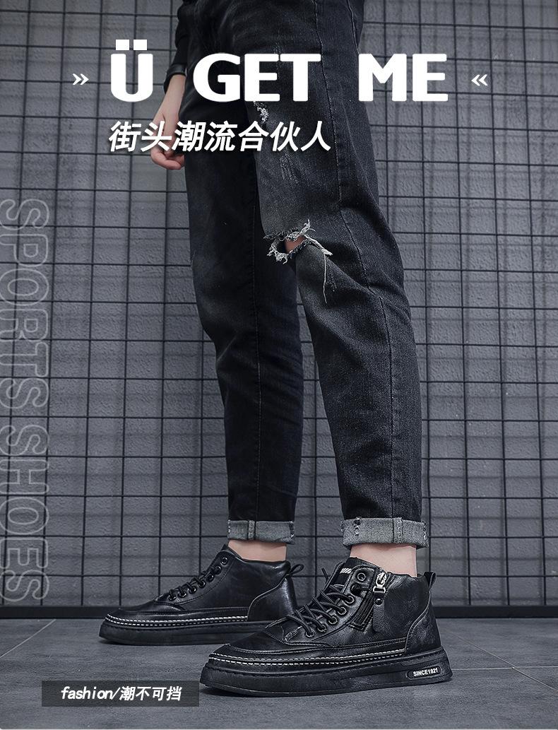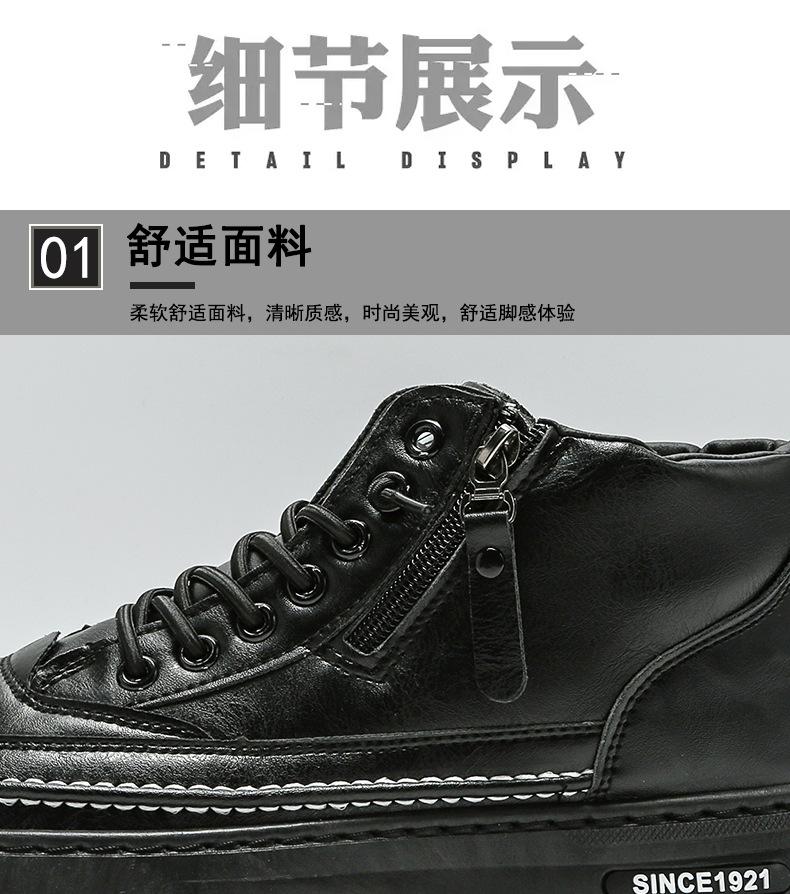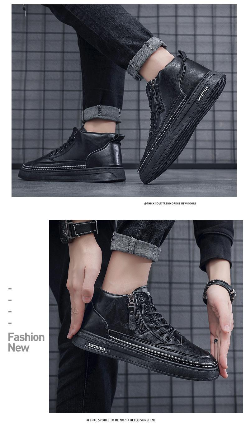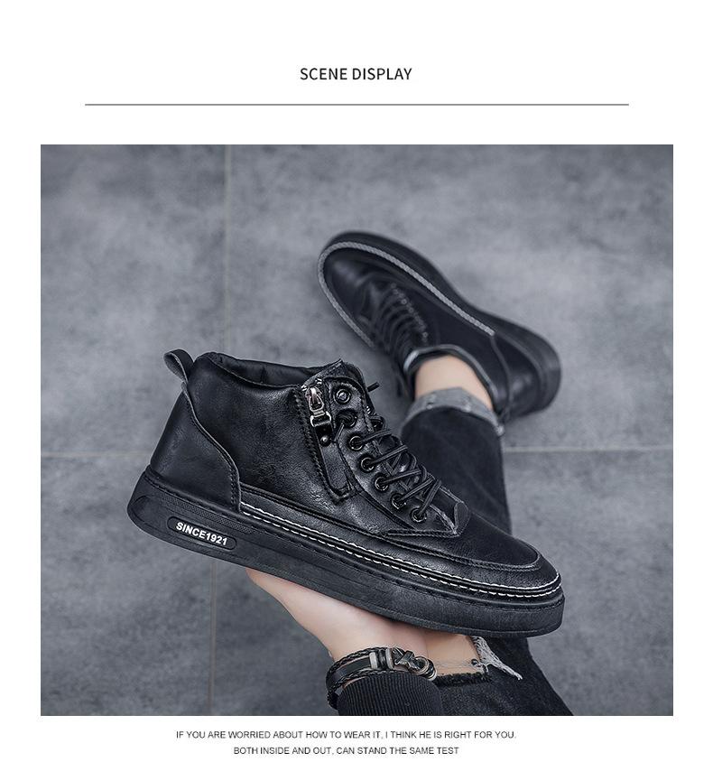 Zapatos casuales de otoño 2025 para hombre, cálidos zapatos deportivos con cremallera, versión coreana combinable, botines negros para hombre al por mayor