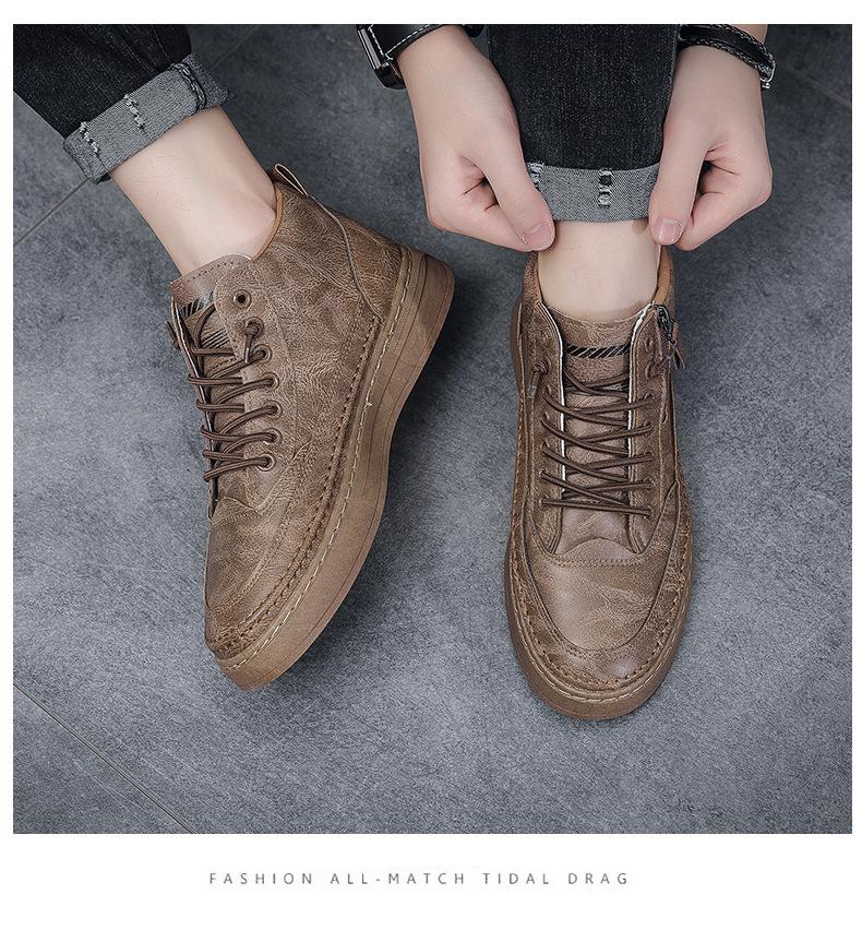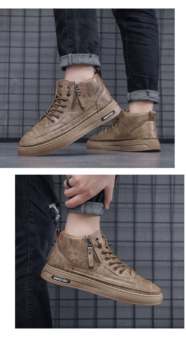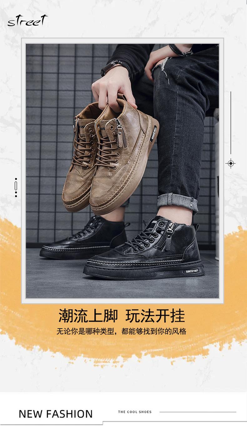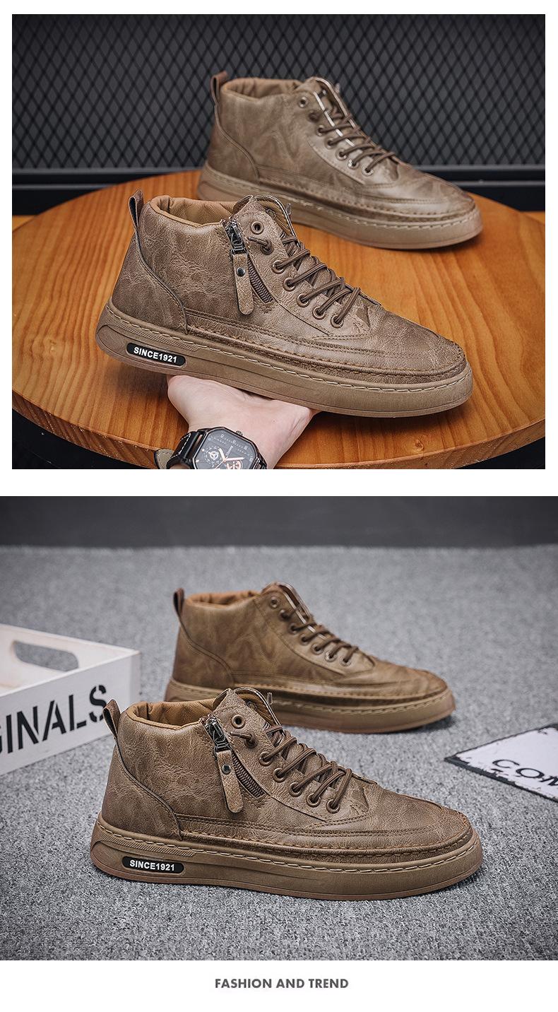 Zapatos casuales de otoño 2025 para hombre, cálidos zapatos deportivos con cremallera, versión coreana combinable, botines negros para hombre al por mayor