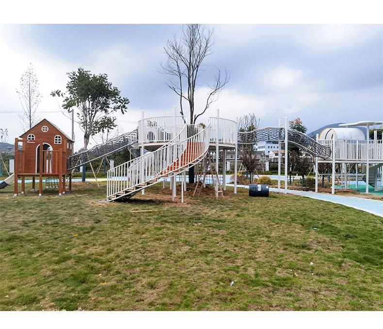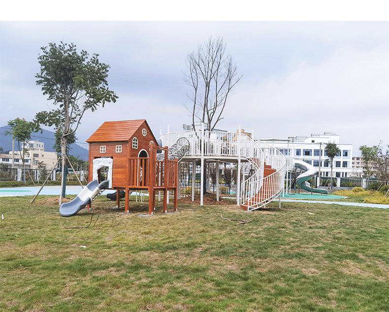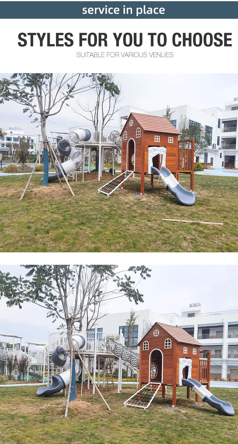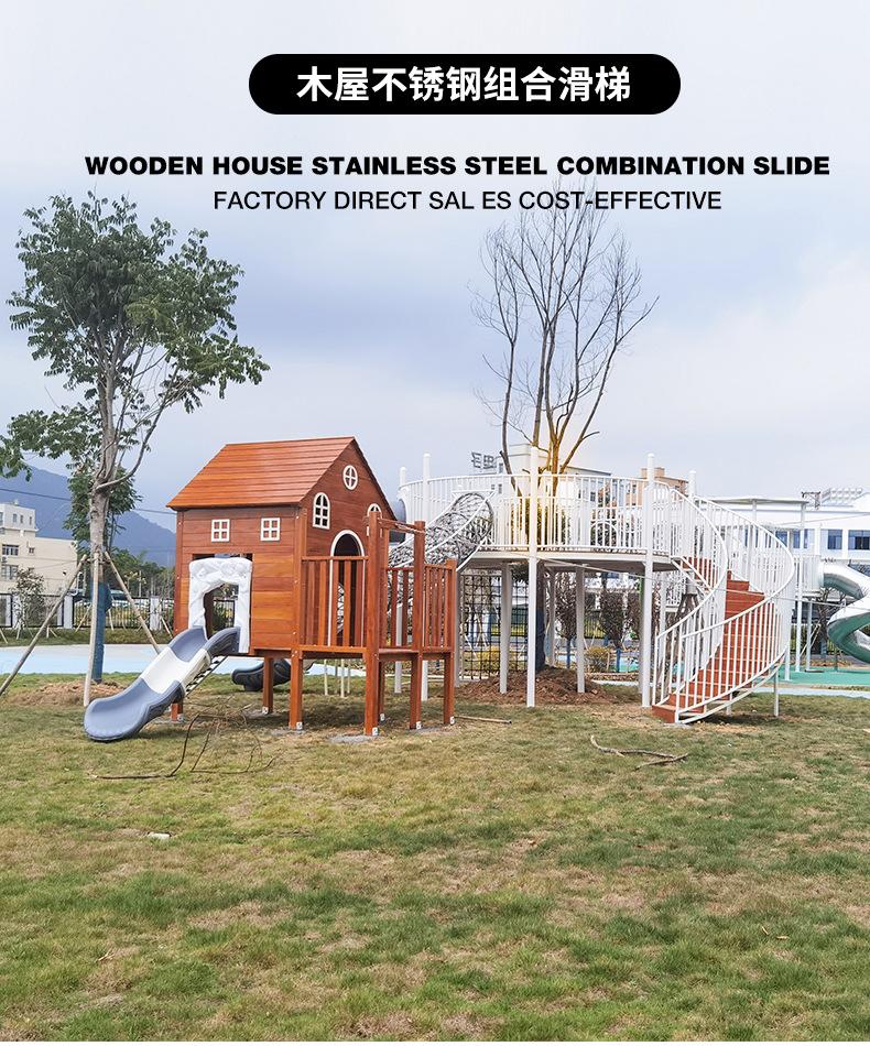 Casa de madera, tobogán de acero inoxidable para jardín de infantes, instalaciones de entretenimiento para interiores y exteriores, gran juguete comunitario combinado de plástico