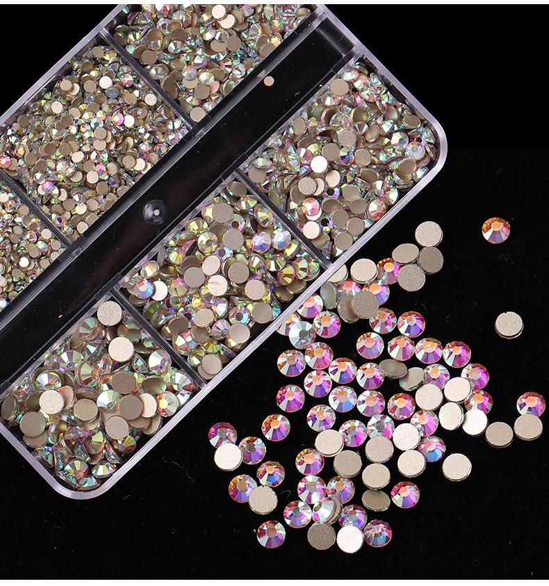 Diamantes redondos pequeños de fondo plano intermitentes para decoración de uñas, diamantes de imitación de cristal AB blanco transparente, decoración de uñas con diamantes, joyería para decoración de uñas