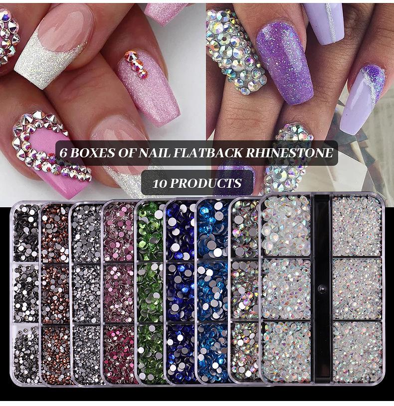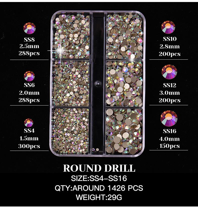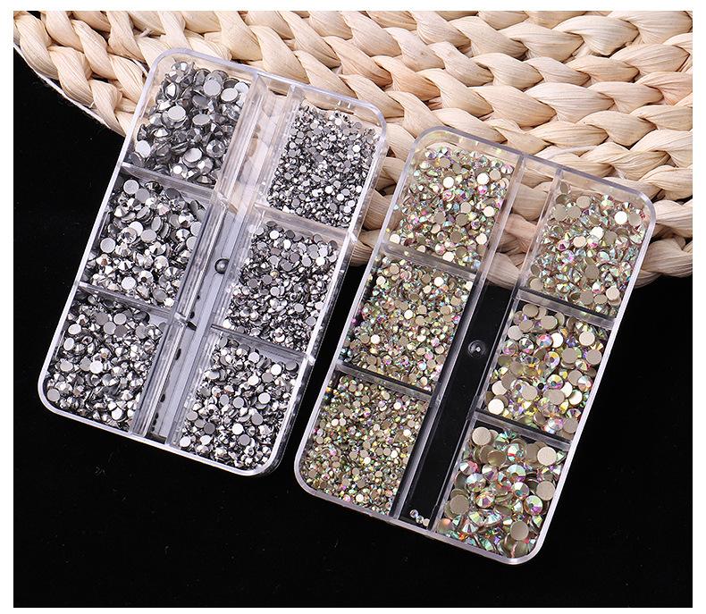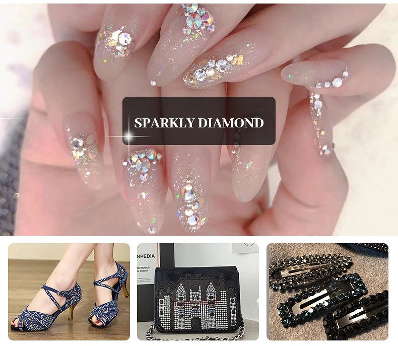 Juego de joyas de diamantes para uñas Flash, taladro para uñas, taladro de fondo plano, taladro de vidrio, decoración de uñas de diamante, venta al por mayor