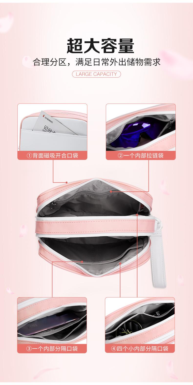 | Descripción del Producto | 1 | Capacidad extra grande y partición razonable para satisfacer las necesidades diarias de almacenamiento cuando se está fuera de casa. | ||